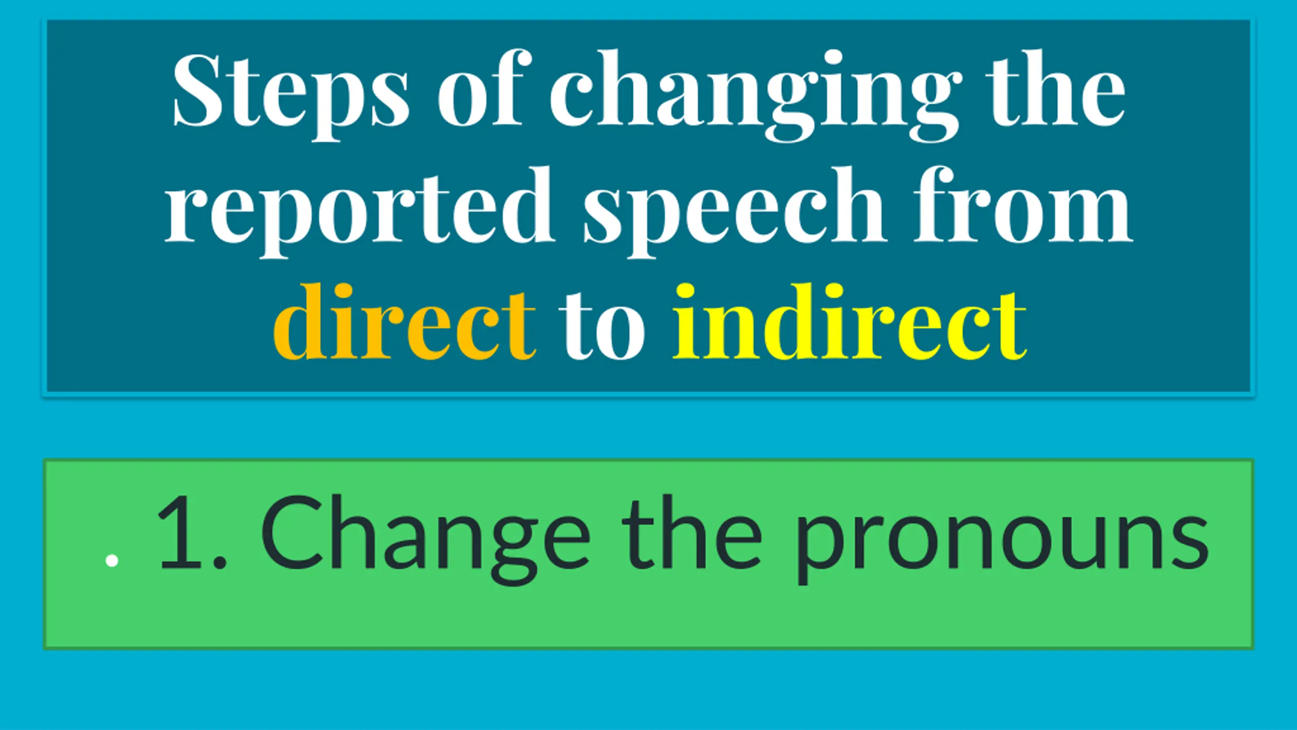 Steps of changing the reported speech from direct to indirect 1. Change the pronouns