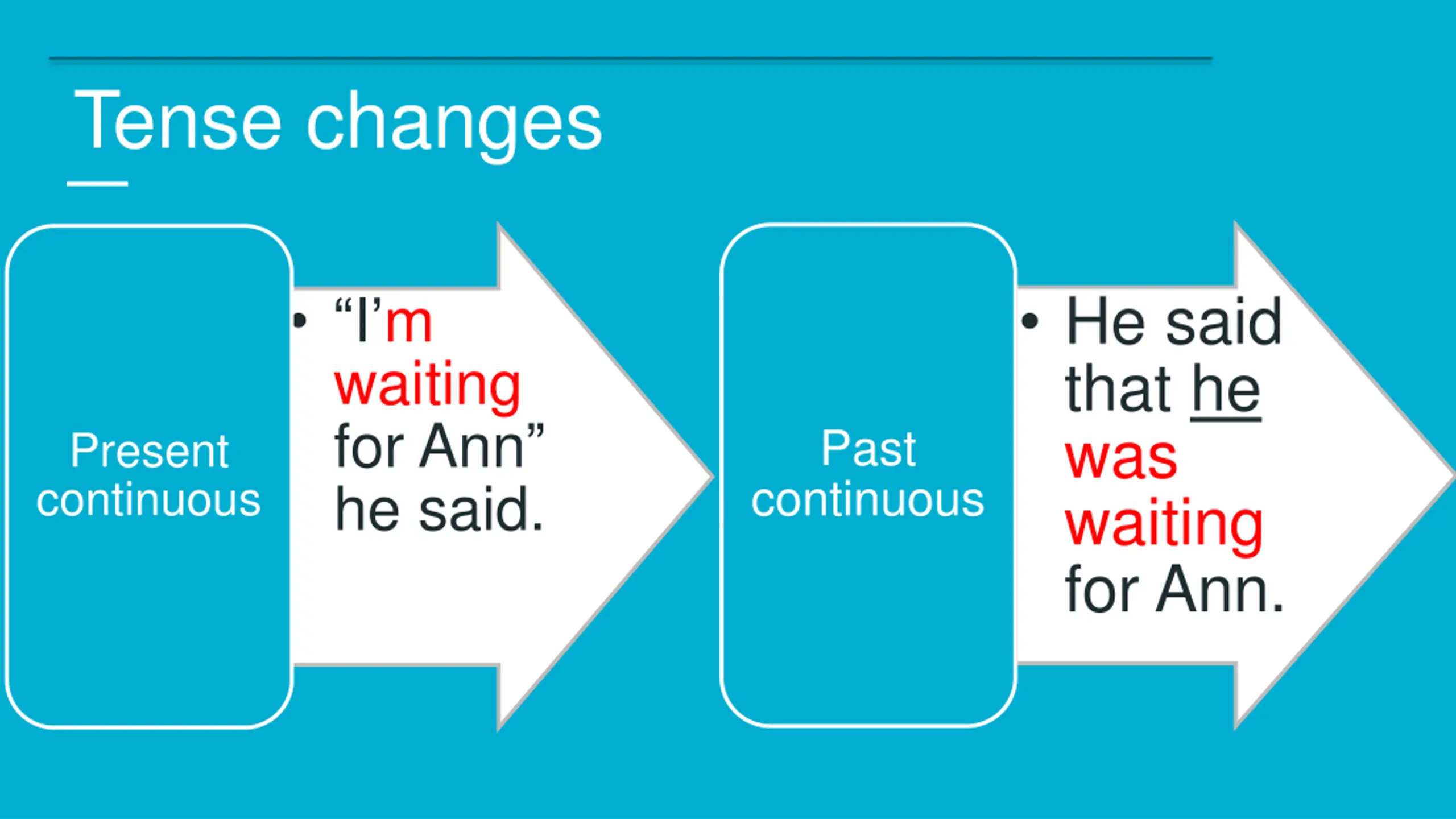 Tense changes He said that he was waiting for Ann. I m waiting for Ann he said. Past Present continuous continuous