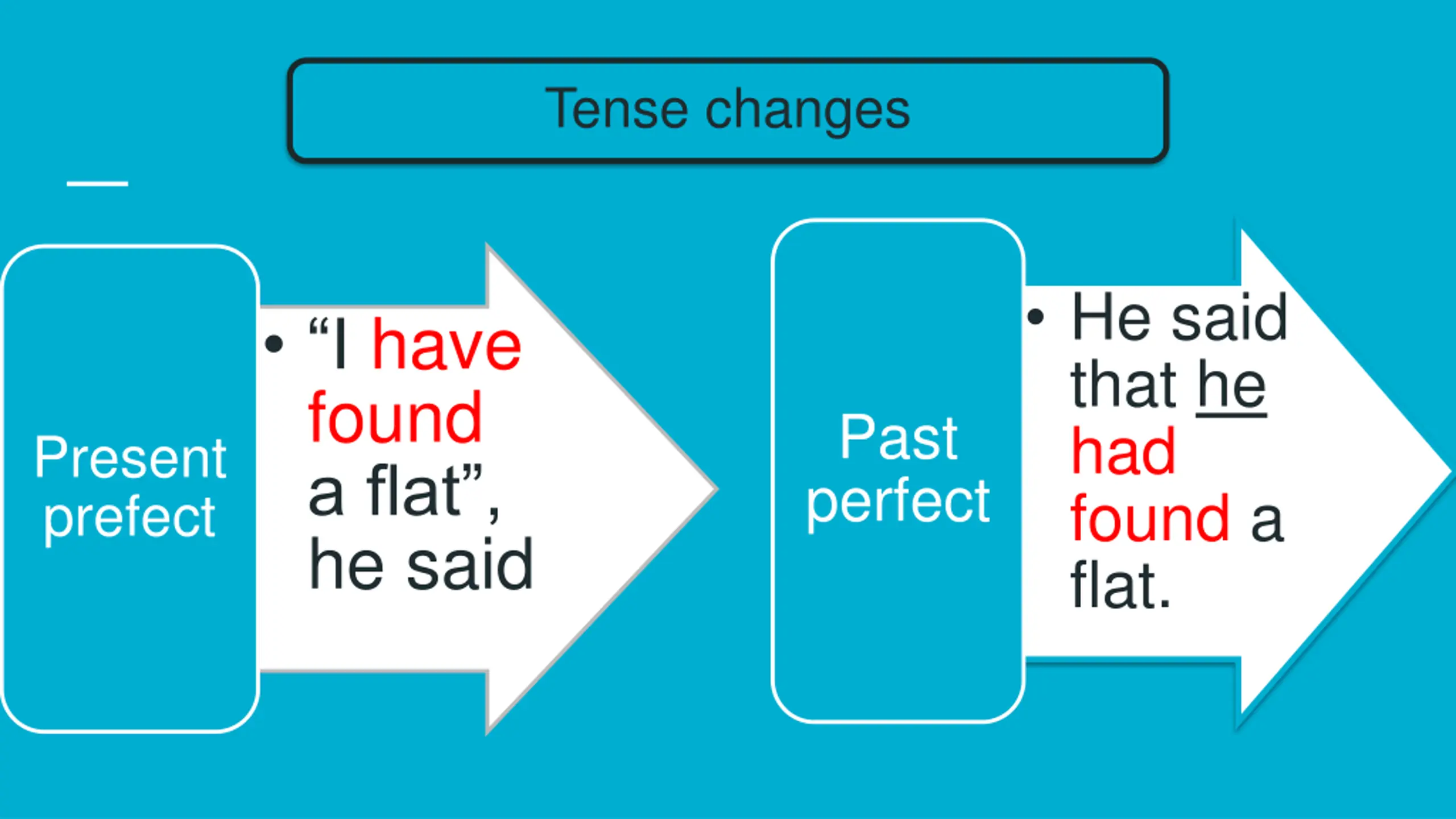 Tense changes He said that he had found a flat. I have found a flat , he said Past perfect Present prefect