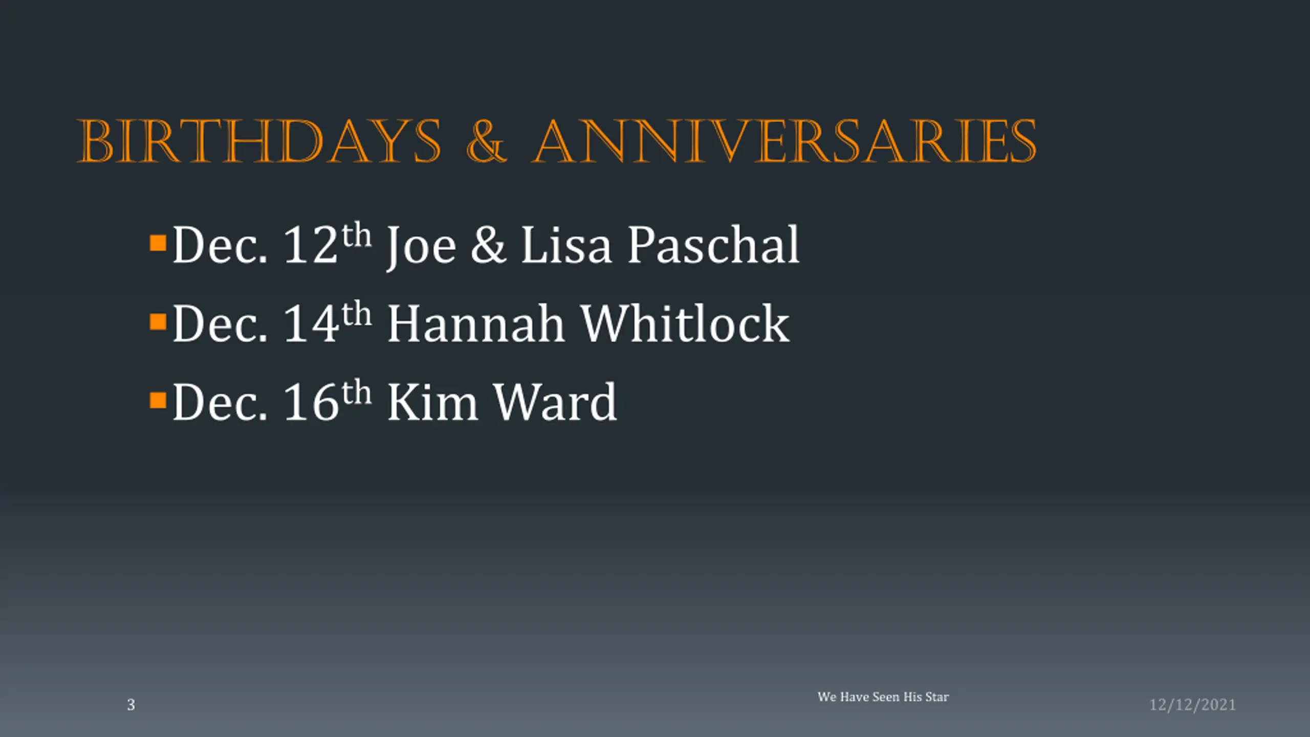 Birthdays & Anniversaries Dec. 12thJoe & Lisa Paschal Dec. 14thHannah Whitlock Dec. 16thKim Ward We Have Seen His Star 3