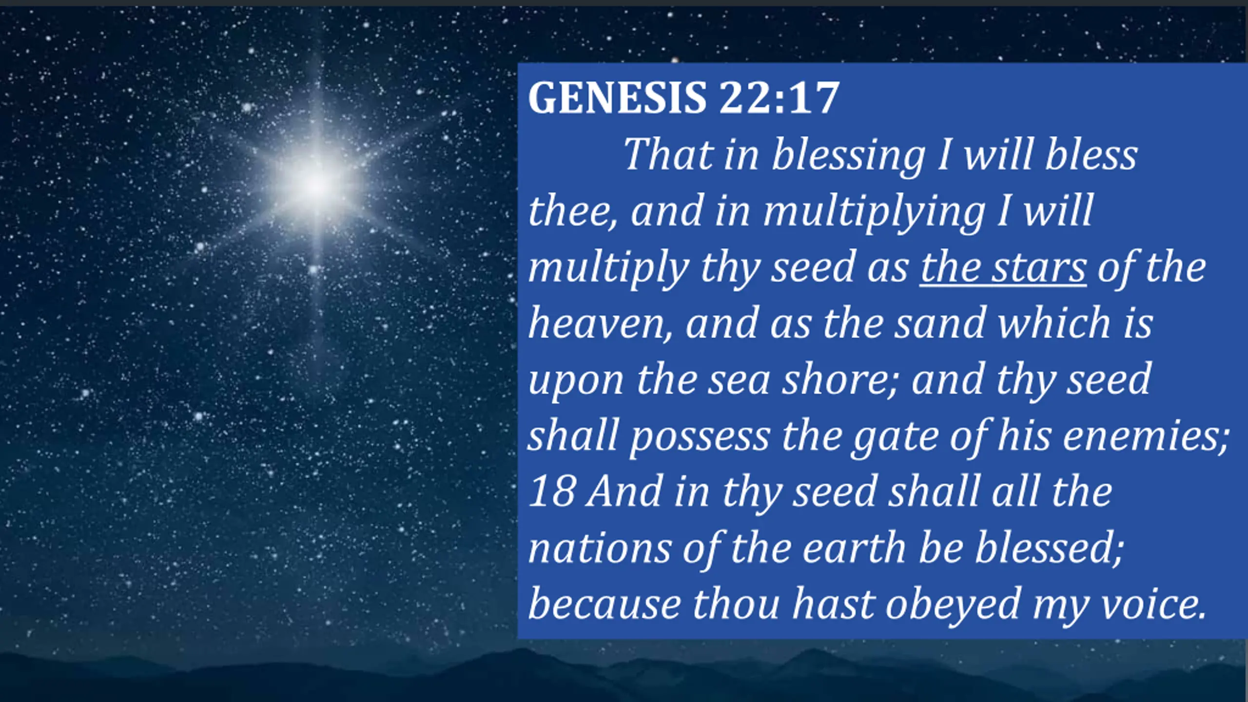 GENESIS 22:17 That in blessing I will bless thee, and in multiplying I will multiply thy seed as the stars of the heaven, and as the sand which is upon the sea shore; and thy seed shall possess the gate of his enemies; 18 And in thy seed shall all the nations of the earth be blessed; because thou hast obeyed my voice. We Have Seen His Star 8