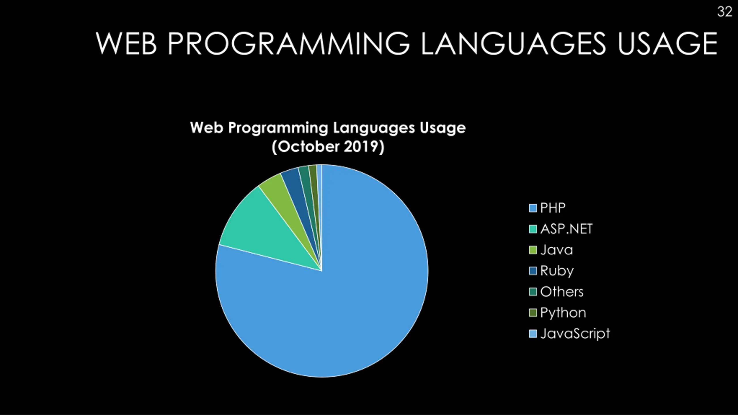 32 WEB PROGRAMMING LANGUAGES USAGE Web Programming Languages Usage (October 2019) PHP ASP.NET Java Ruby Others Python JavaScript