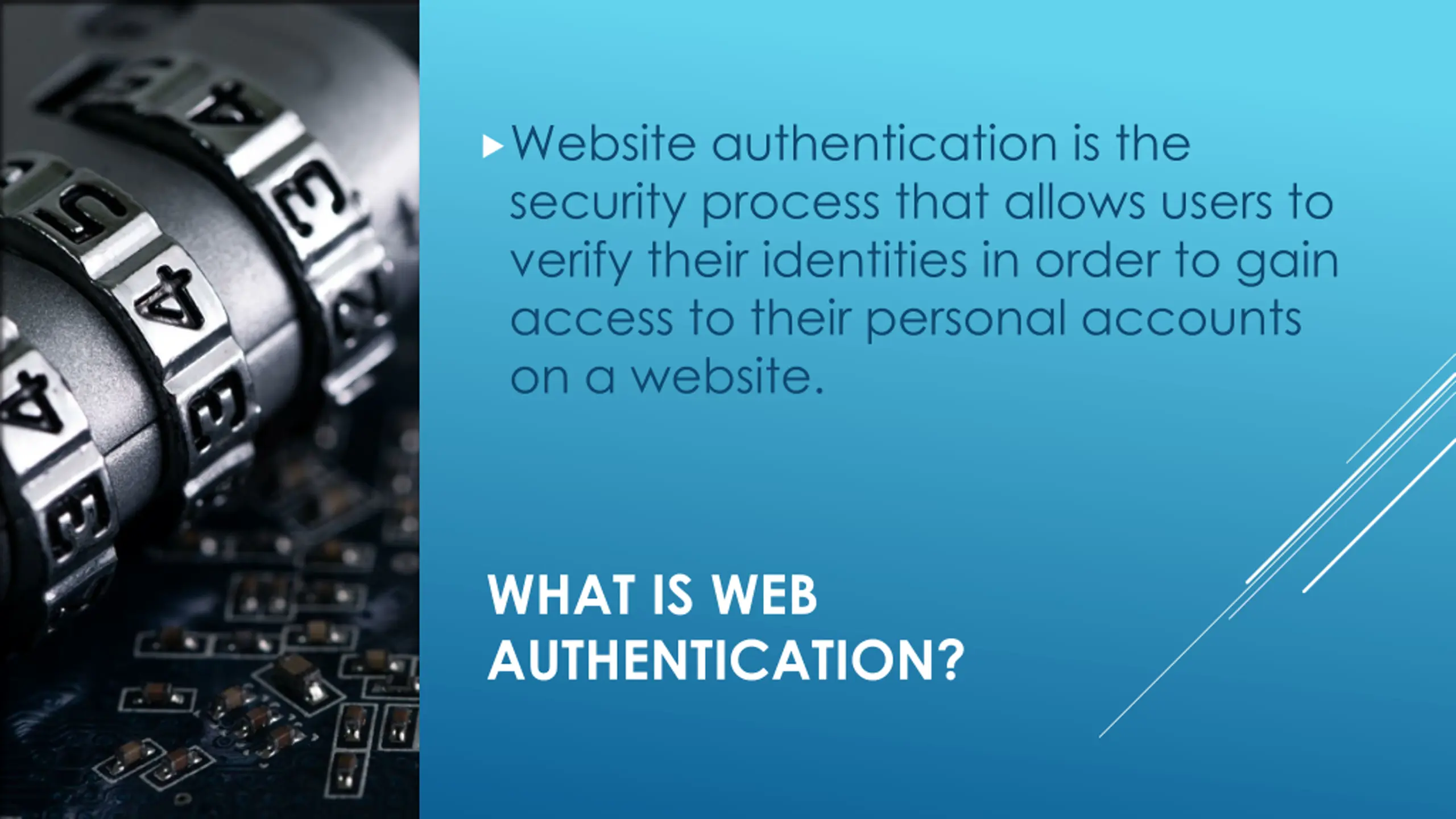 Website authentication is the security process that allows users to verify their identities in order to gain access to their personal accounts on a website. WHAT IS WEB AUTHENTICATION?