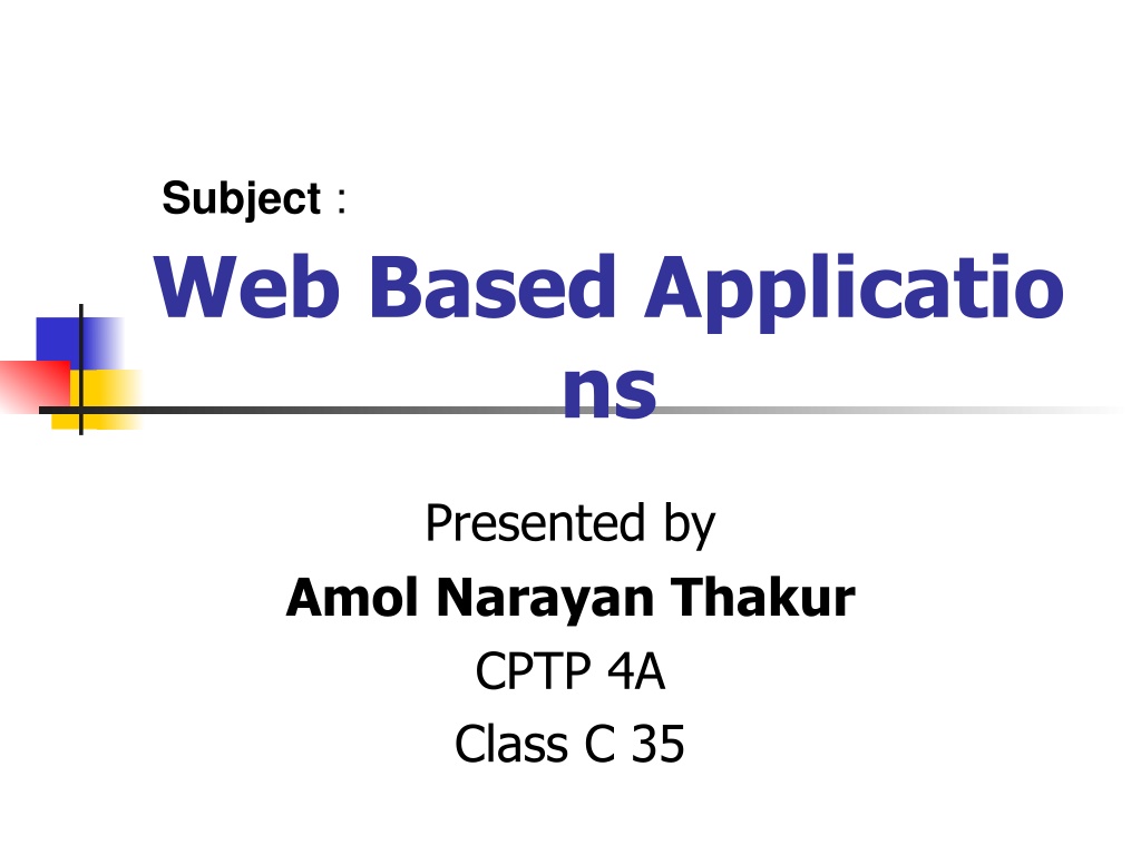 Subject : Web Based Applicatio ns Presented by Amol Narayan Thakur CPTP 4A Class C 35
