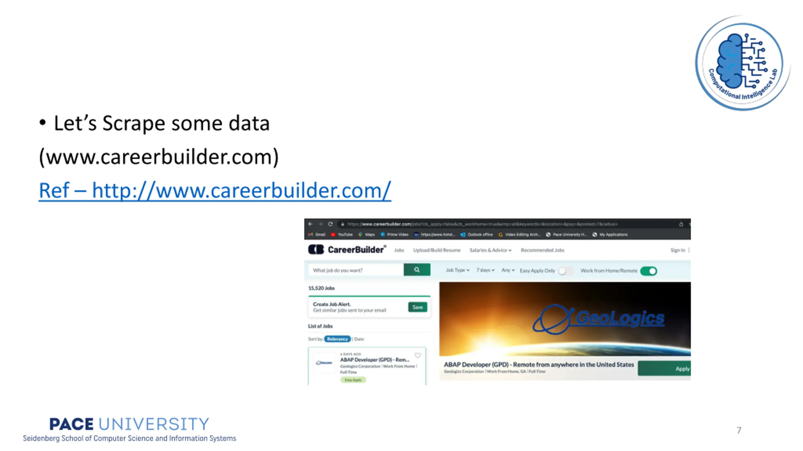 Lets Scrape some data (www.careerbuilder.com) Ref http://www.careerbuilder.com/ 7