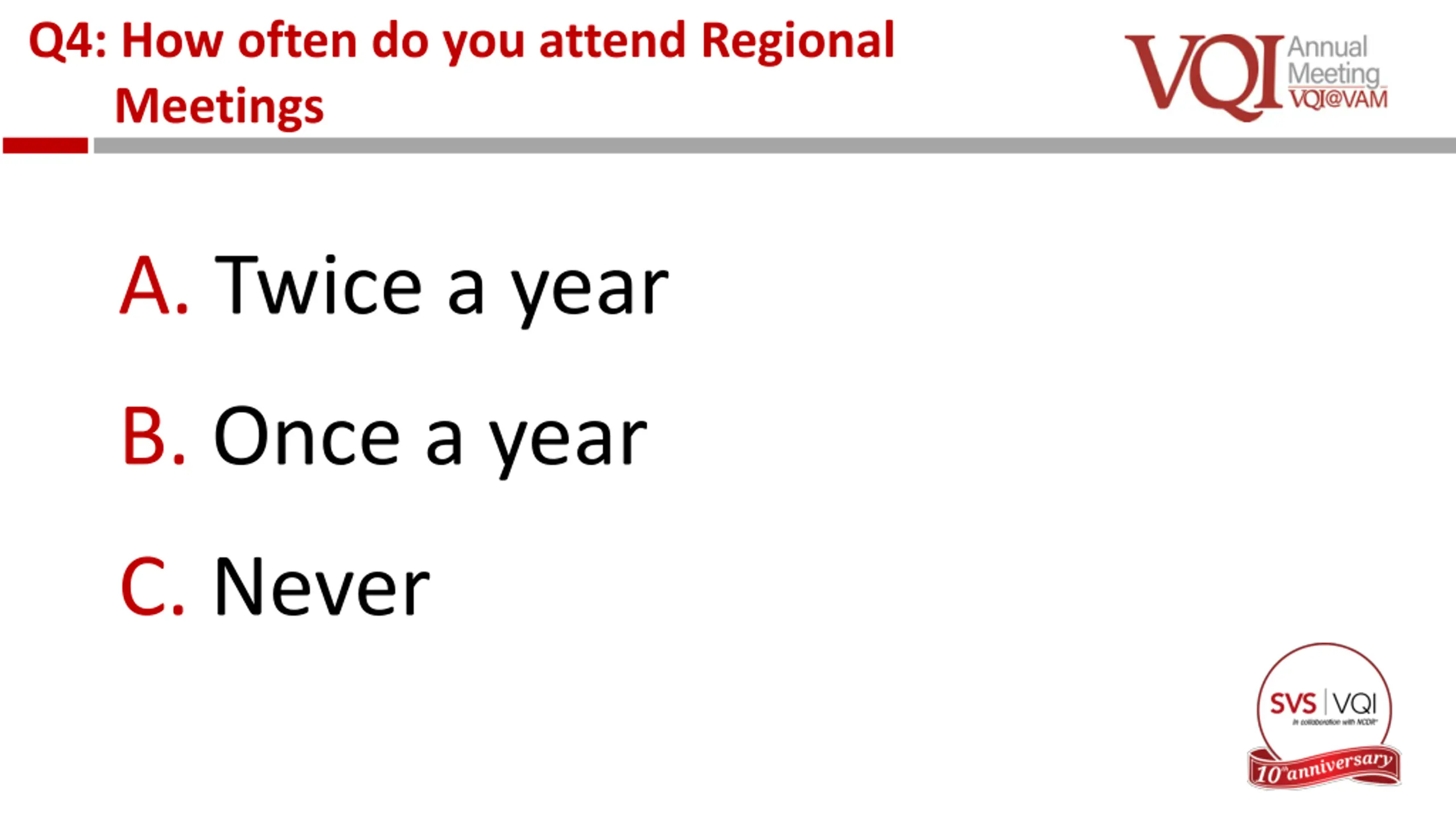 Q4: How often do you attend Regional Meetings A. Twice a year B. Once a year C. Never