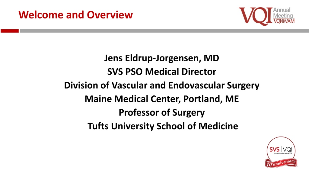 Welcome and Overview Jens Eldrup-Jorgensen, MD SVS PSO Medical Director Division of Vascular and Endovascular Surgery Maine Medical Center, Portland, ME Professor of Surgery Tufts University School of Medicine