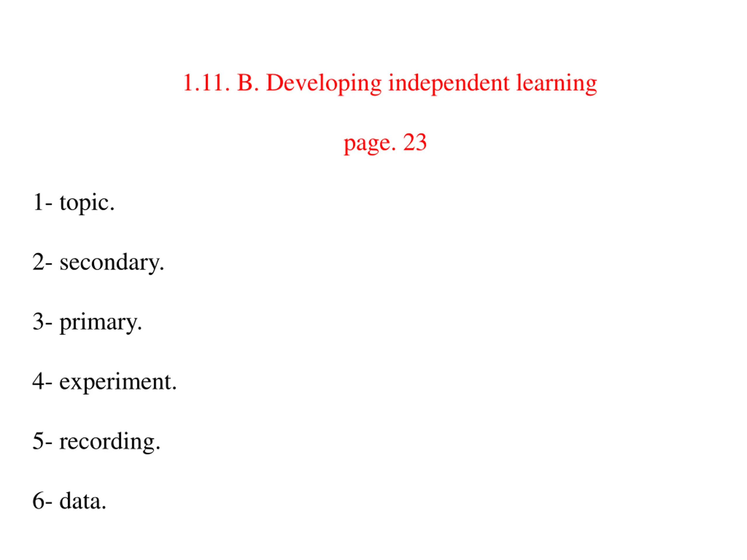 1.11. B. Developing independent learning page. 23 1- topic. 2- secondary. 3- primary. 4- experiment. 5- recording. 6- data.