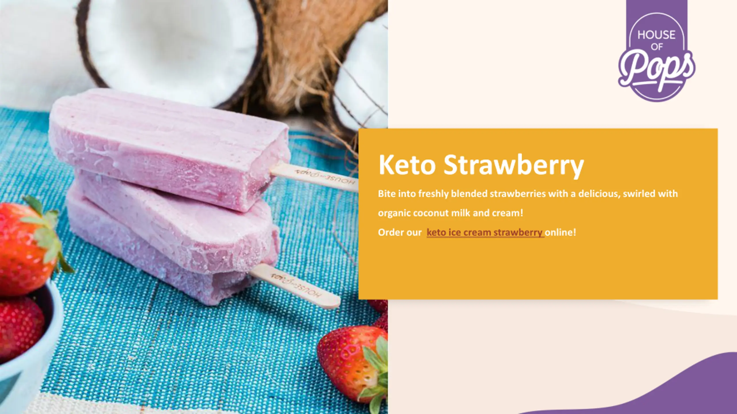 Keto Strawberry Bite into freshly blended strawberries with a delicious, swirled with organic coconut milk and cream! Order our keto ice cream strawberry online!