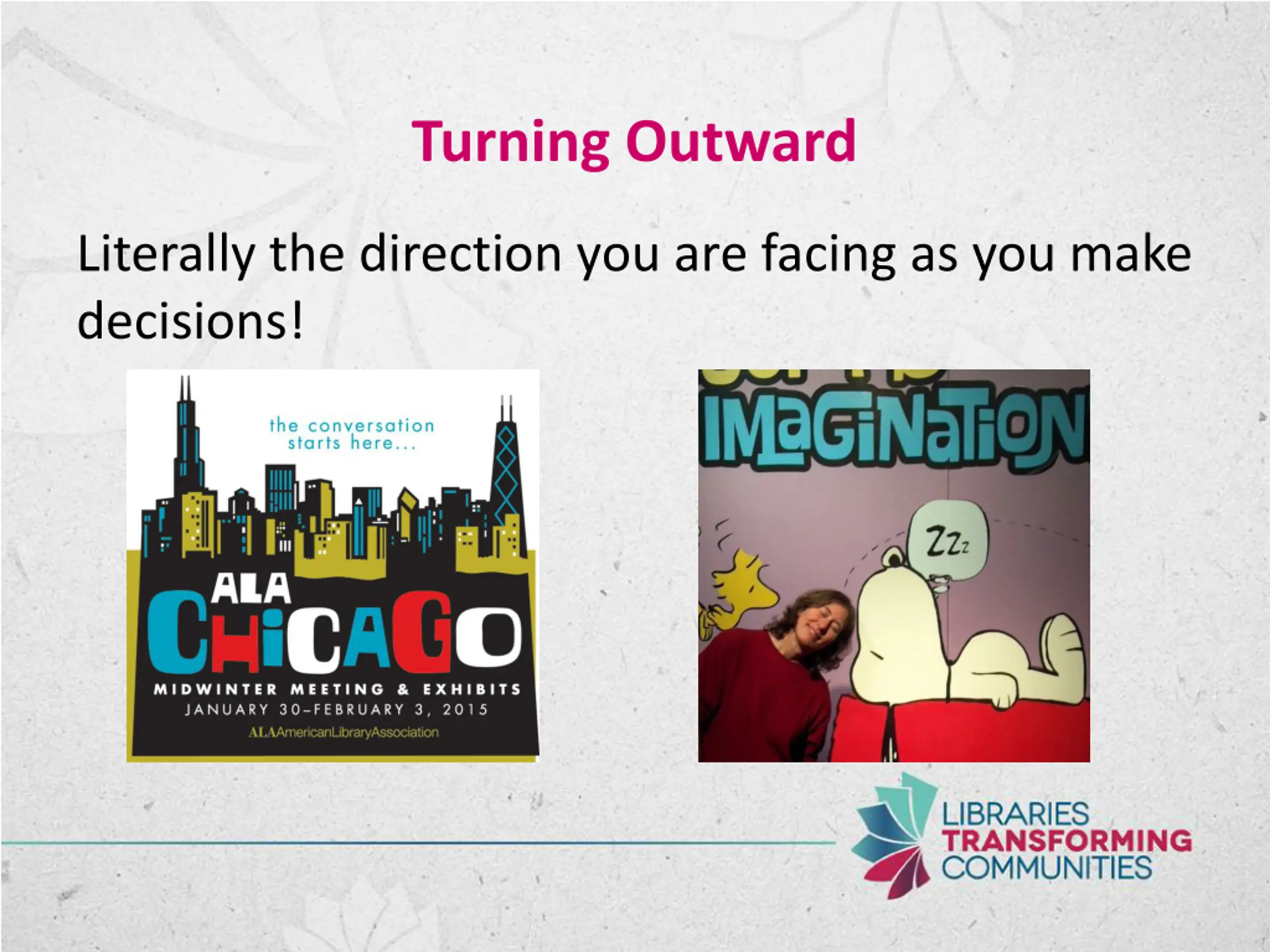Turning Outward Turn Quiz individually (5) and at tables (30) What do I make of my results? Where did we have differences in our answers and what is that telling us? What are the implications for our work?
