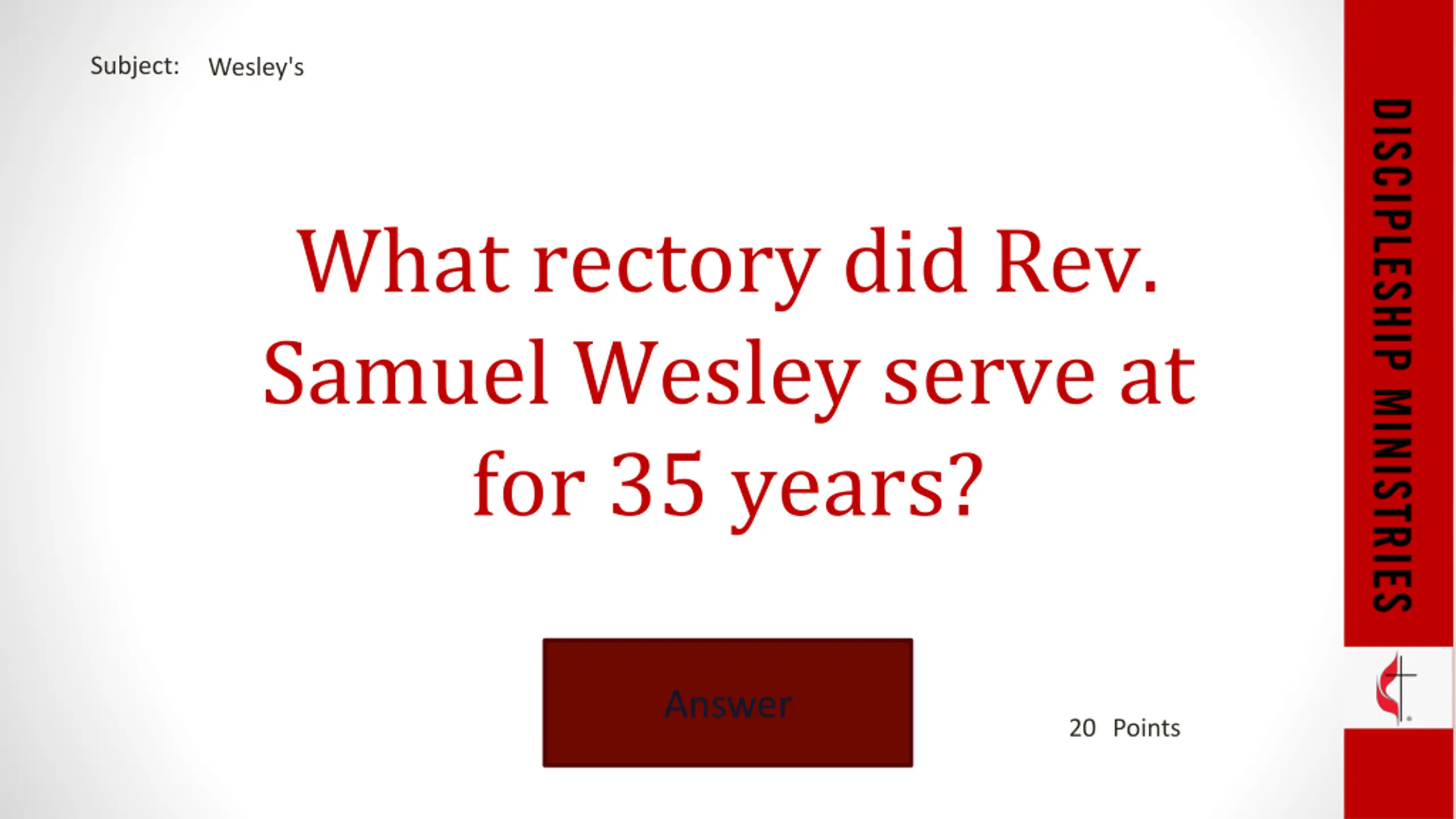 Subject: Wesley's What rectory did Rev. Samuel Wesley serve at for 35 years? Answer Answer 20 Points