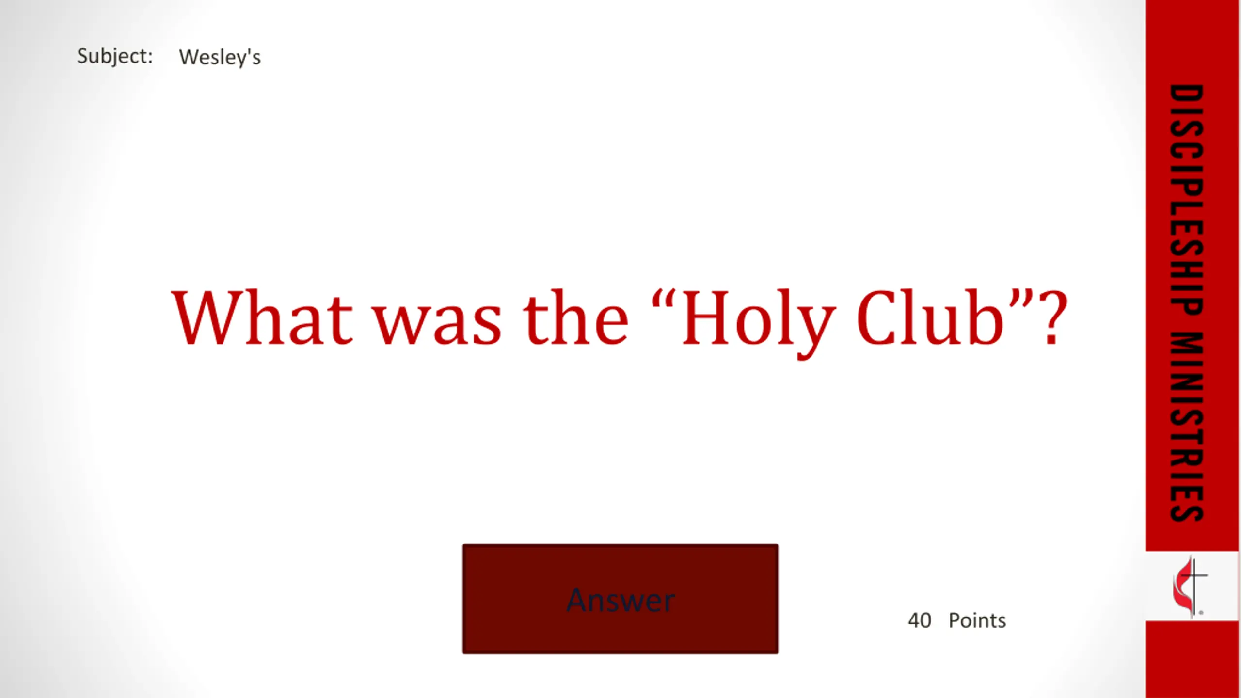 Subject: Wesley's What was the Holy Club ? Answer Answer 40 Points