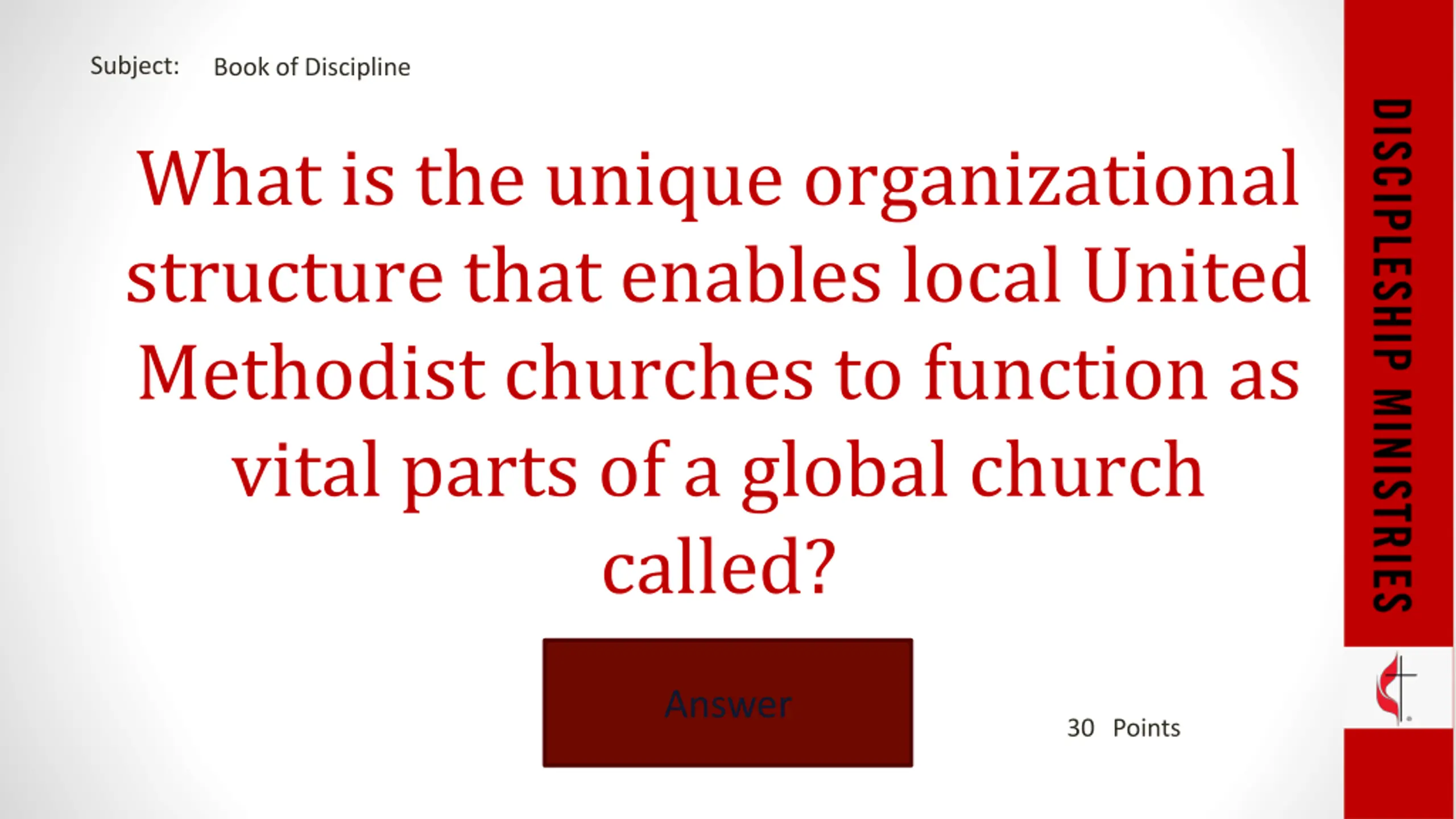 Subject: Book of Discipline What is the unique organizational structure that enables local United Methodist churches to function as vital parts of a global church called? Answer Answer 30 Points