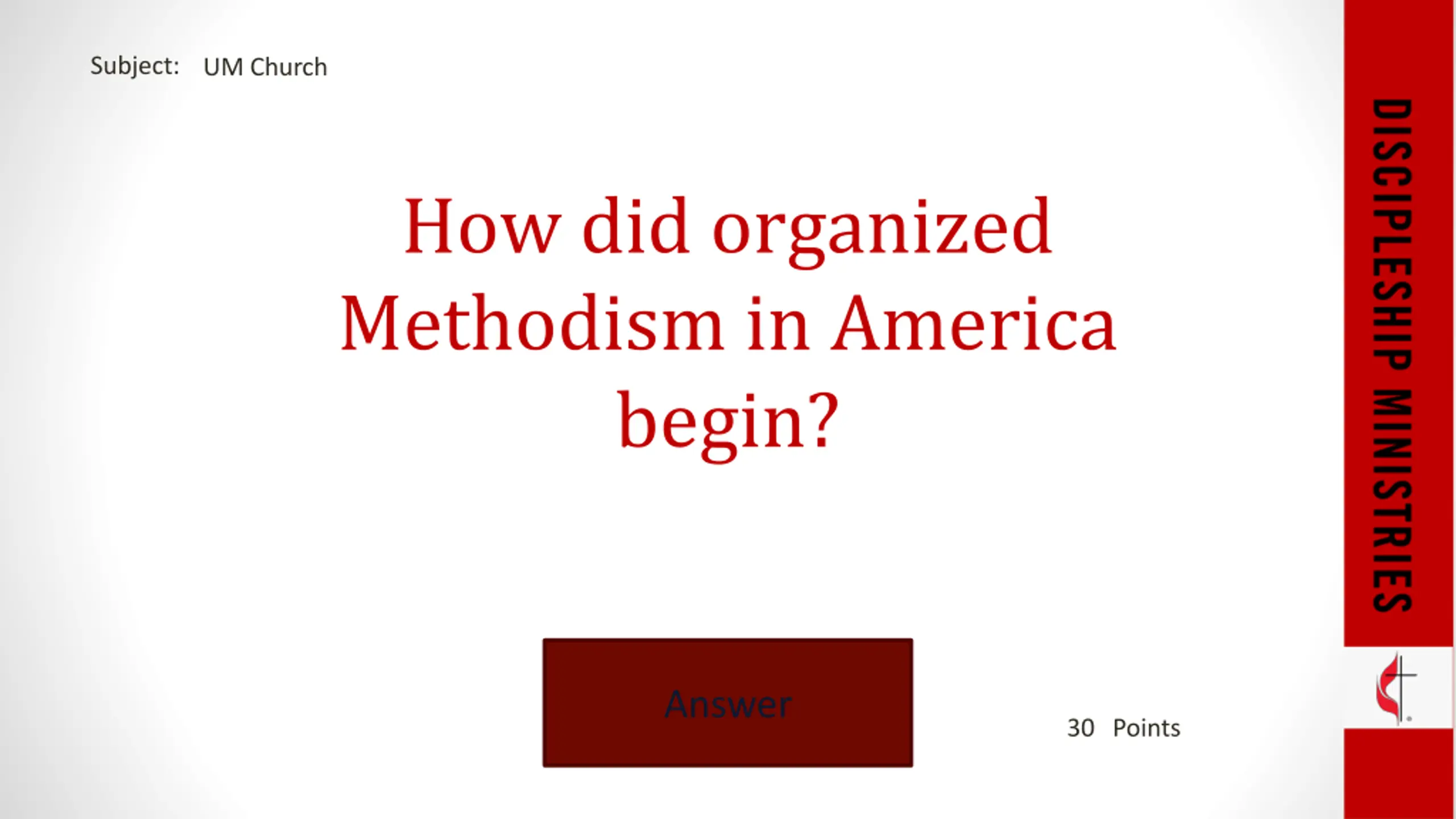 Subject: UM Church How did organized Methodism in America begin? Answer Answer 30 Points