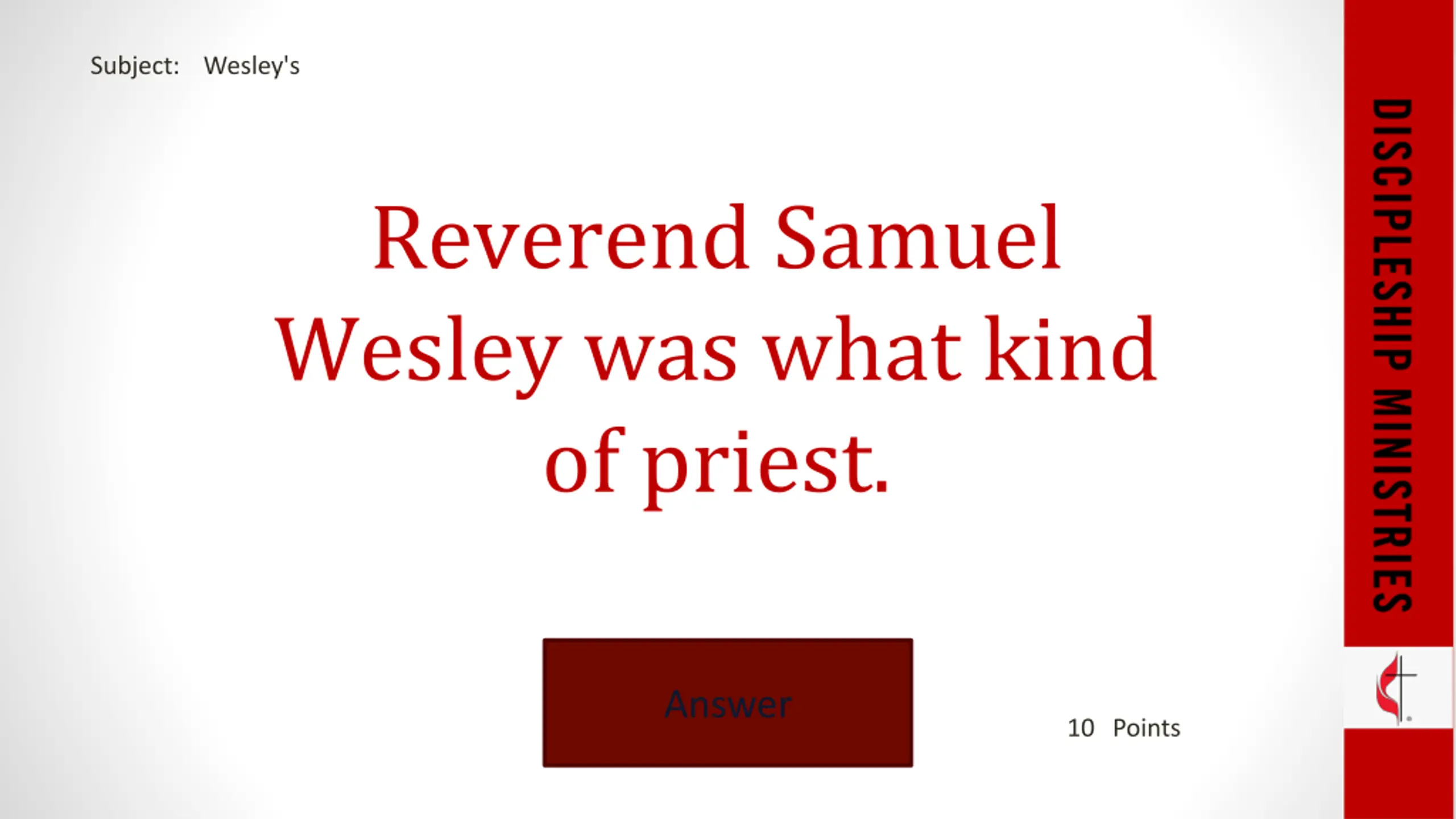 Subject: Wesley's Reverend Samuel Wesley was what kind of priest. Answer Answer 10 Points