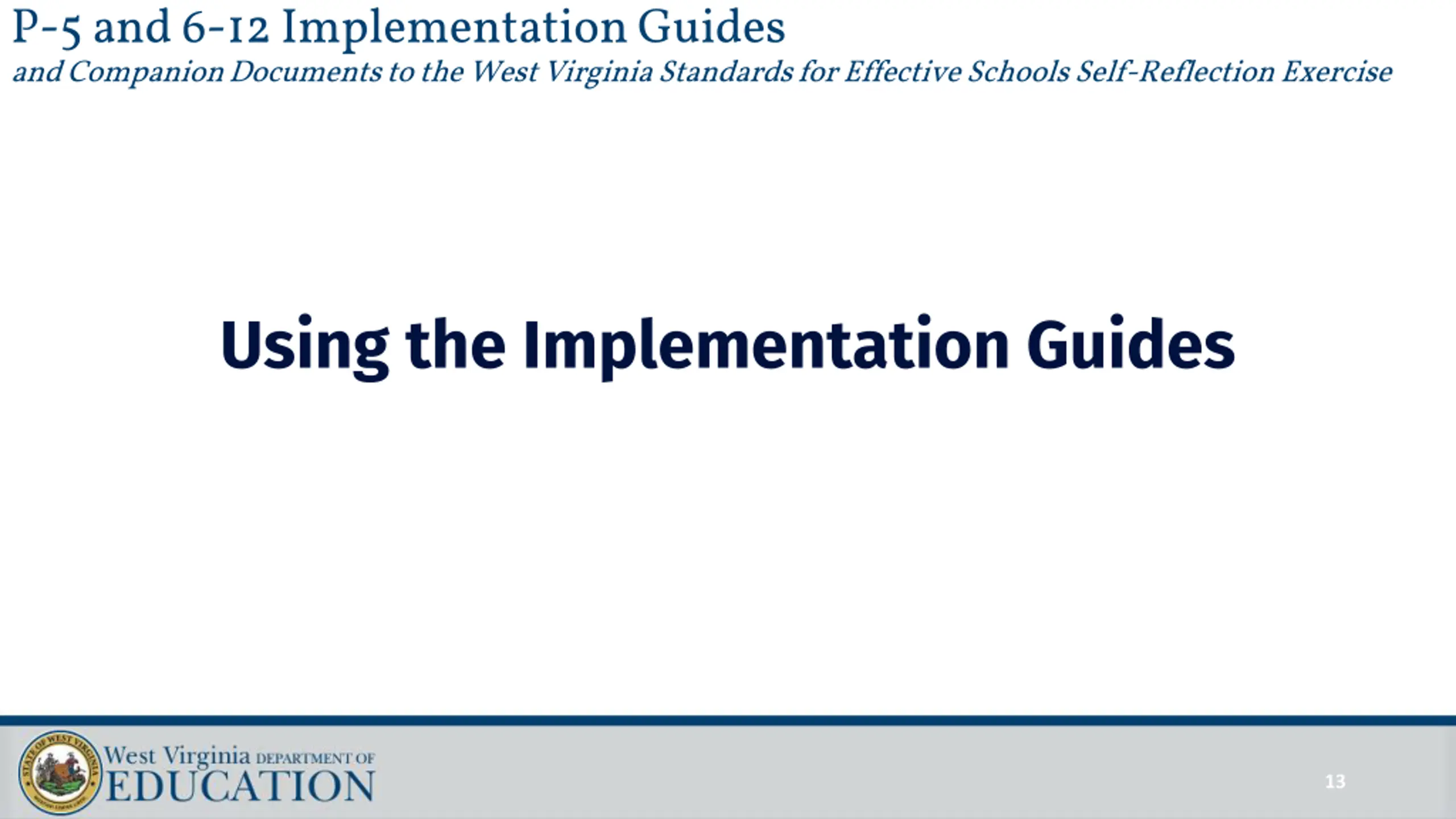 P-5 and 6-12 Implementation Guides and Companion Documents to the West Virginia Standards for Effective Schools Self-Reflection Exercise Using the Implementation Guides 13