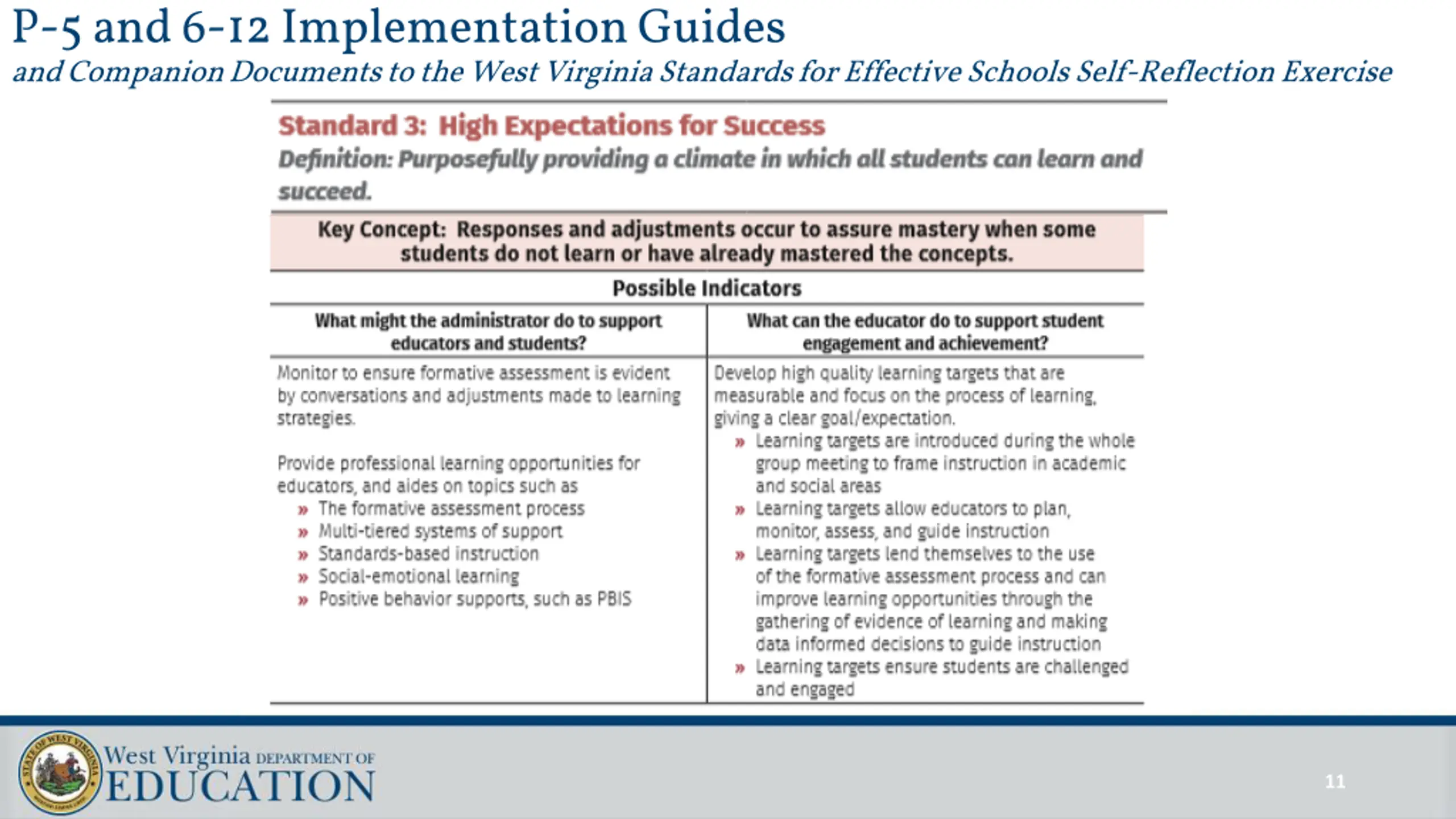 P-5 and 6-12 Implementation Guides and Companion Documents to the West Virginia Standards for Effective Schools Self-Reflection Exercise 11