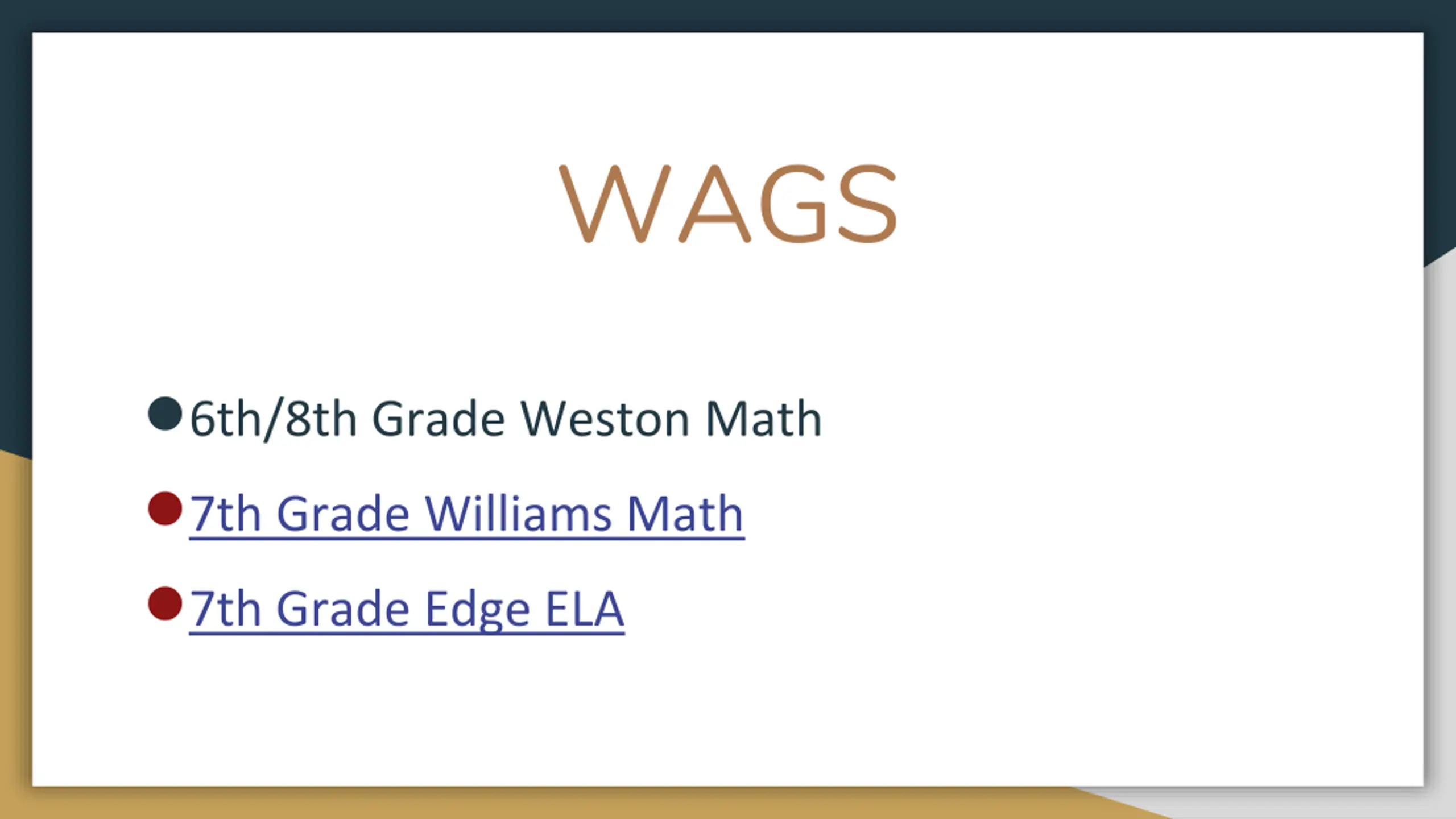 WAGS 6th/8th Grade Weston Math 7th Grade Williams Math 7th Grade Edge ELA