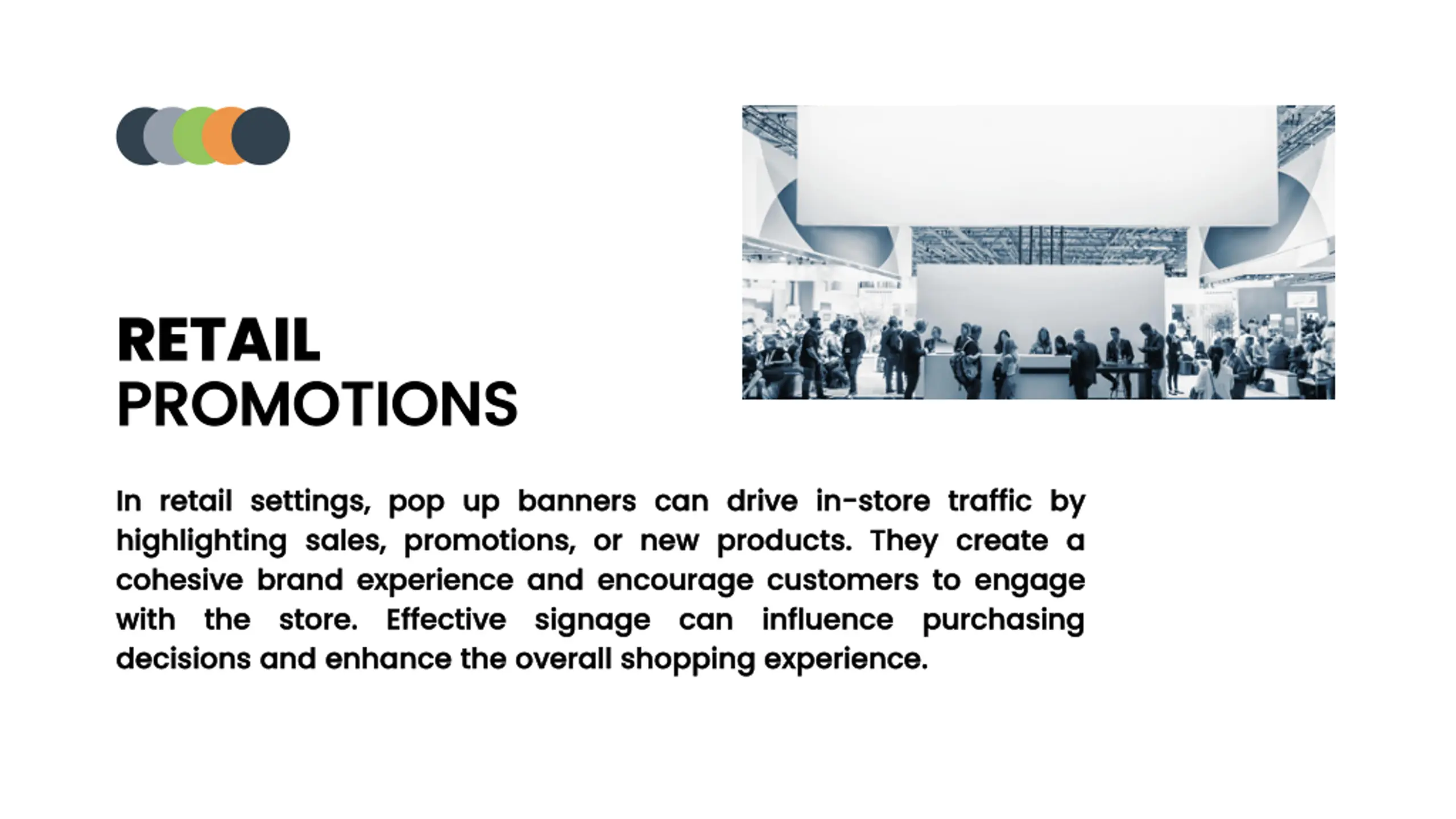 RETAIL PROMOTIONS PROMOTIONS In In retail retail settings, highlighting highlighting sales, cohesive cohesive brand with with the the store decisions decisions and settings, pop sales, promotions, promotions, or brand experience experience and store. . Effective Effective signage and enhance enhance the pop up can drive or new new products products. . They and encourage encourage customers signage can can influence the overall overall shopping shopping experience up banners banners can drive in in- -store store traffic They create customers to influence purchasing purchasing experience. . traffic by create a a to engage engage by