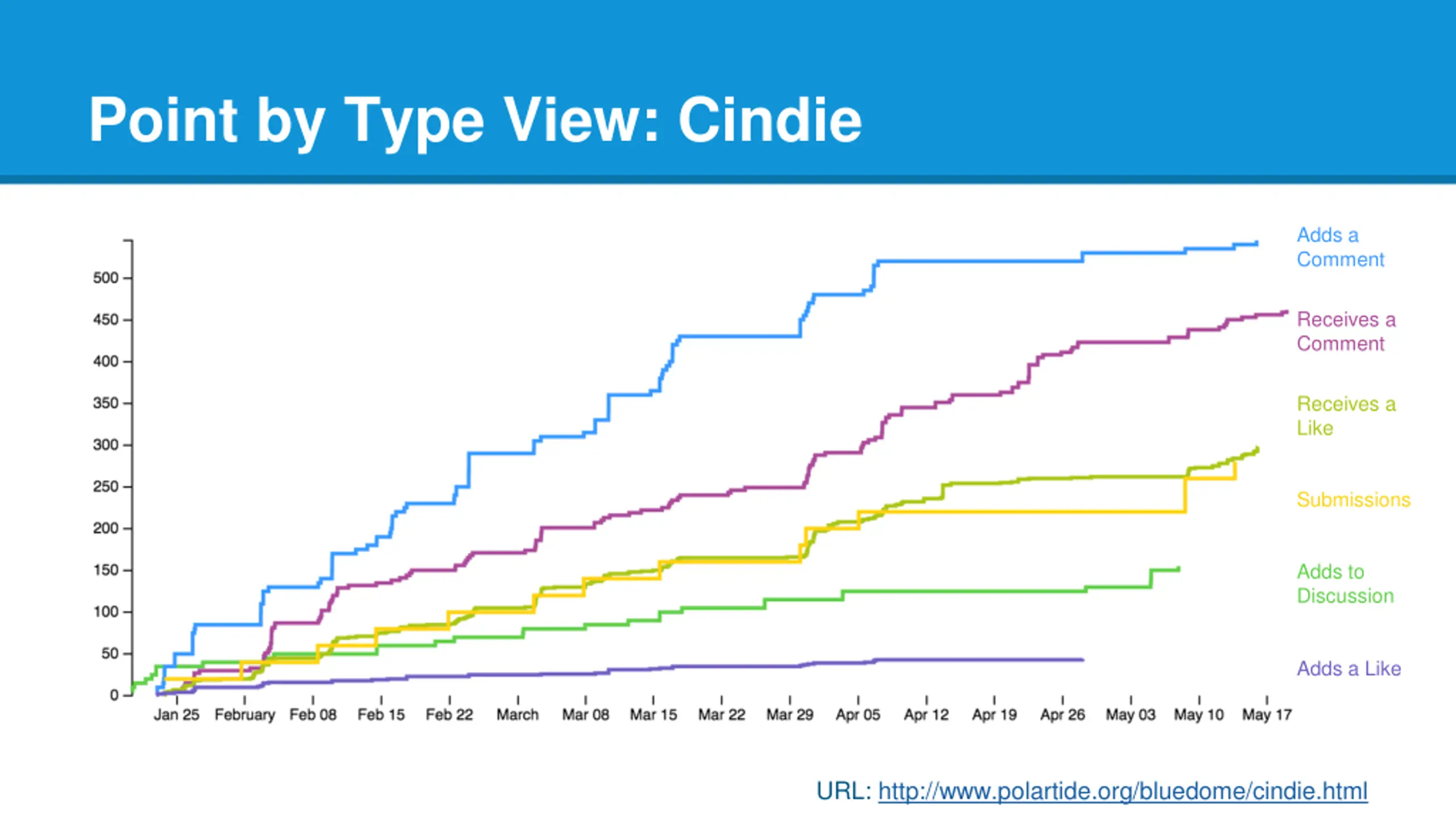 - Point by Type View: Cindie Adds a Comment Ettie Receives a Comment Receives a Like Gisela Submissions Adds to Discussion Abigail Adds a Like URL: http://www.polartide.org/bluedome/cindie.html