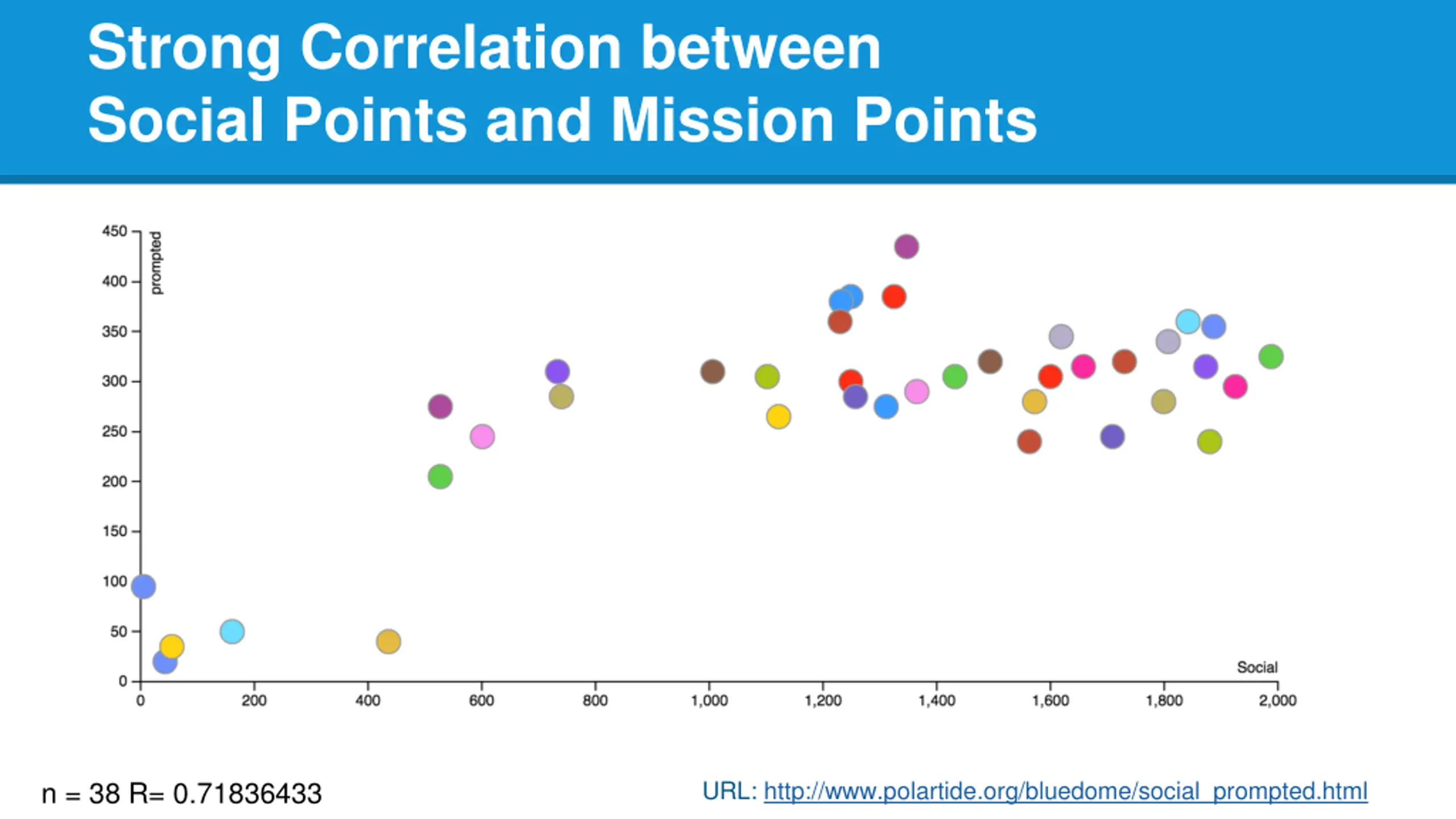 - Strong Correlation between Social Points and Mission Points Ettie Gisela Abigail n = 38 R= 0.71836433 URL: http://www.polartide.org/bluedome/social_prompted.html