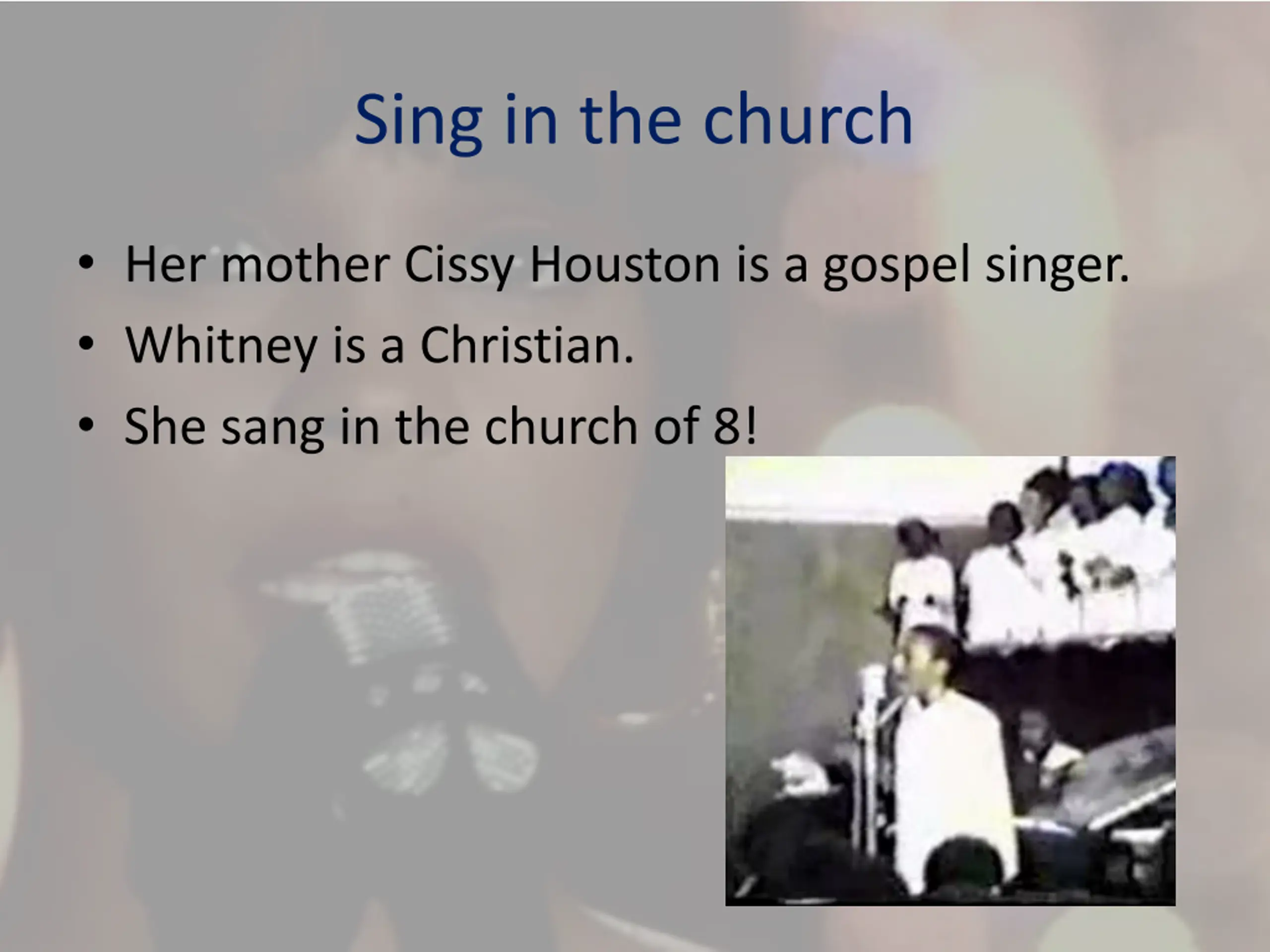 Sing in the church Her mother Cissy Houston is a gospel singer. Whitney is a Christian. She sang in the church of 8!