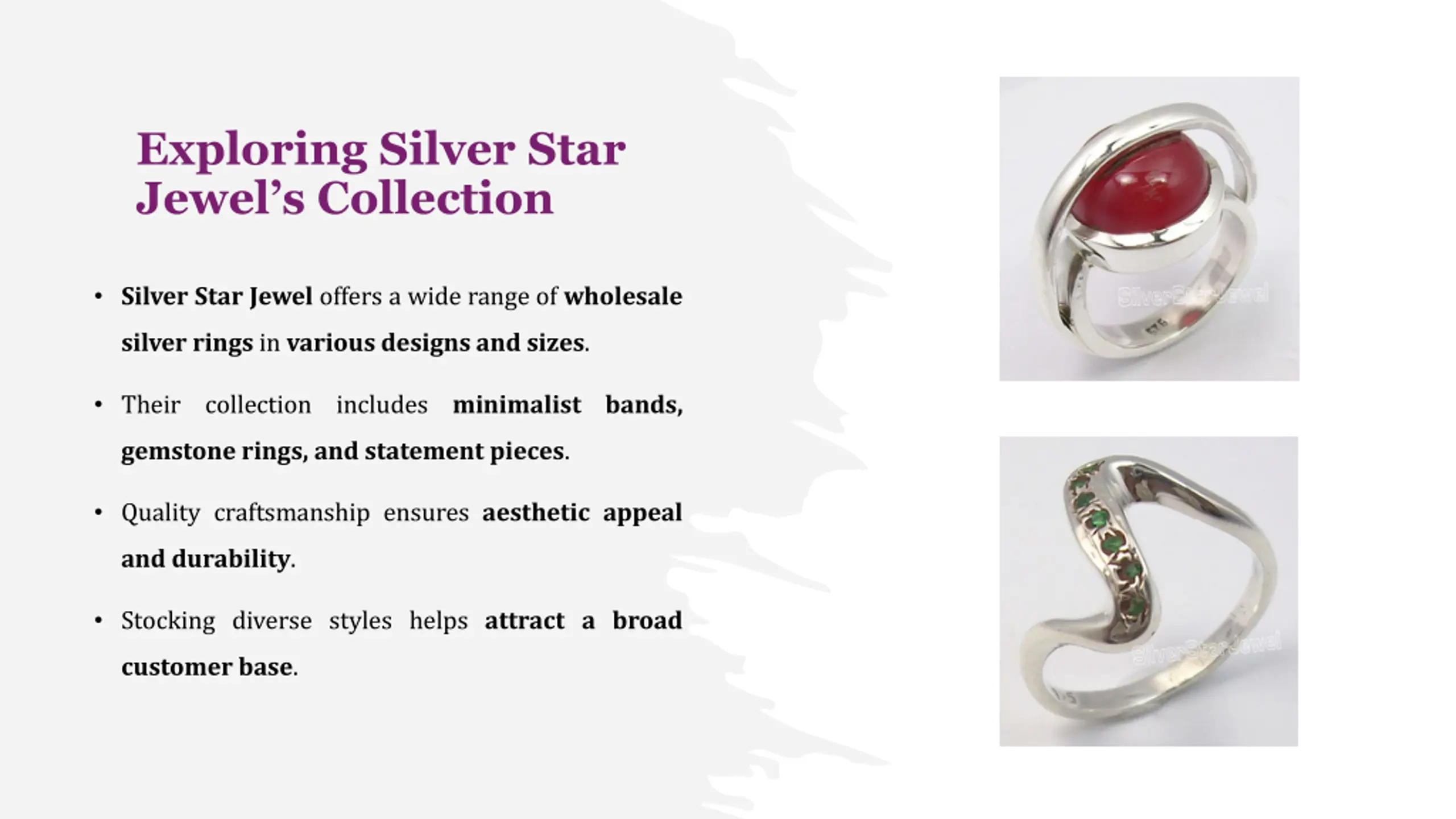 Exploring Silver Star Jewel s Collection Silver Star Jewel offers a wide range of wholesale silver rings in various designs and sizes. Their collection includes minimalist bands, gemstone rings, and statement pieces. Quality craftsmanship ensures aesthetic appeal and durability. Stocking diverse styles helps attract a broad customer base.