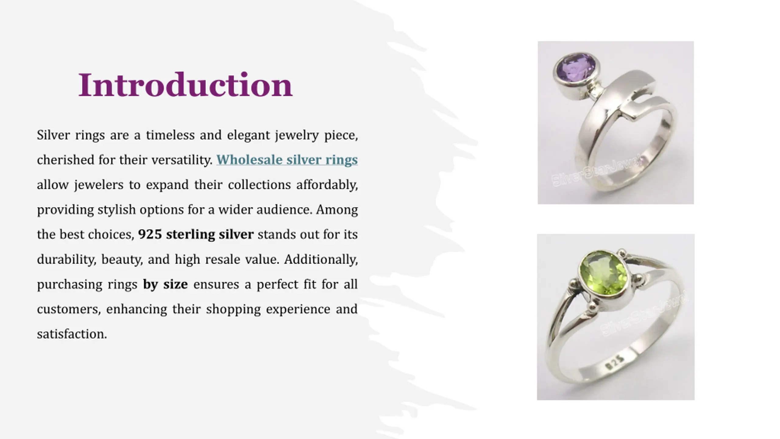 Introduction Silver rings are a timeless and elegant jewelry piece, cherished for their versatility. Wholesale silver rings allow jewelers to expand their collections affordably, providing stylish options for a wider audience. Among the best choices, 925 sterling silver stands out for its durability, beauty, and high resale value. Additionally, purchasing rings by size ensures a perfect fit for all customers, enhancing their shopping experience and satisfaction.