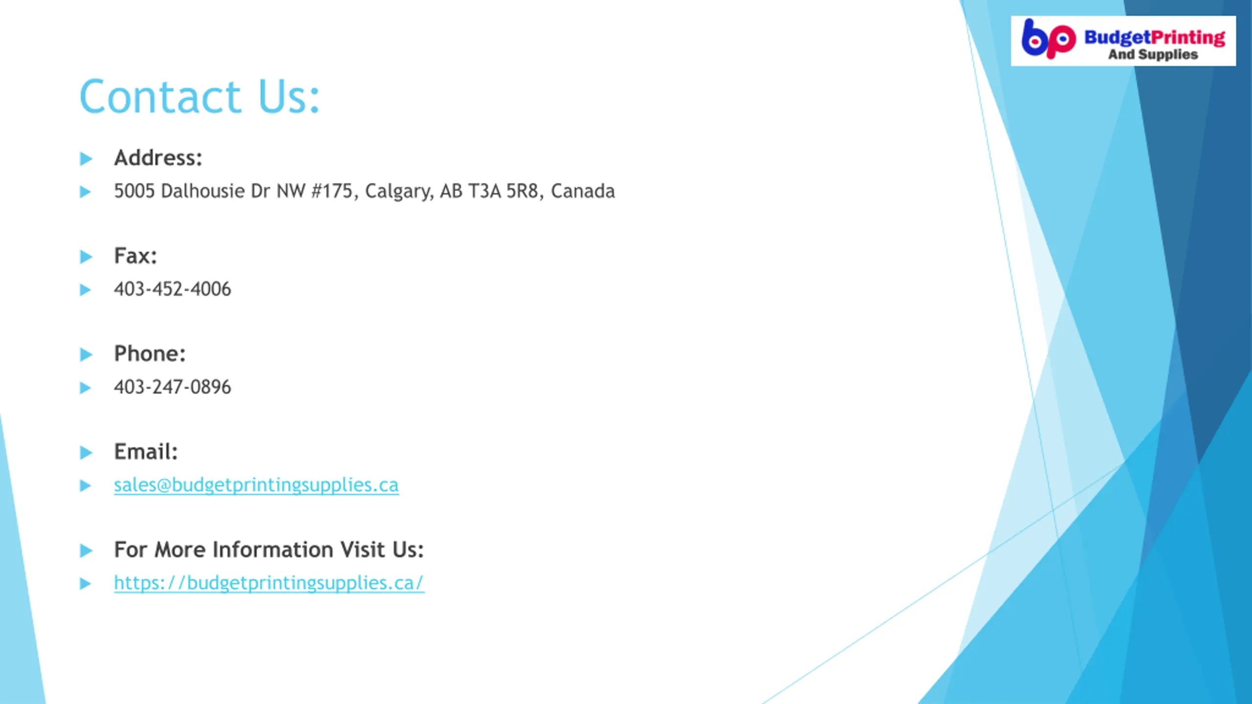 Contact Us: Address: 5005 Dalhousie Dr NW #175, Calgary, AB T3A 5R8, Canada Fax: 403-452-4006 Phone: 403-247-0896 Email: sales@budgetprintingsupplies.ca For More Information Visit Us: https://budgetprintingsupplies.ca/