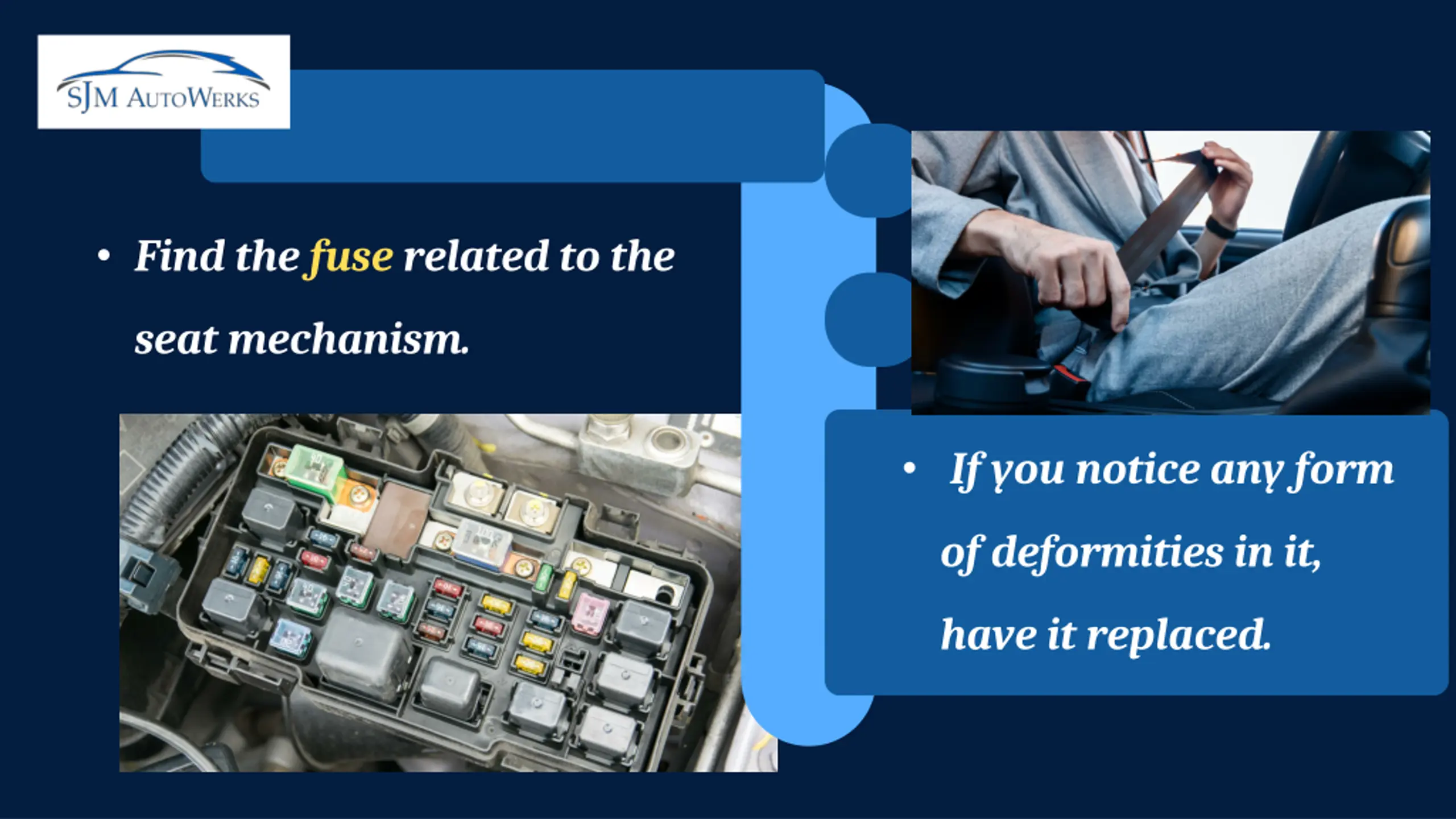 Find the fuse related to the seat mechanism. If you notice any form of deformities in it, have it replaced.