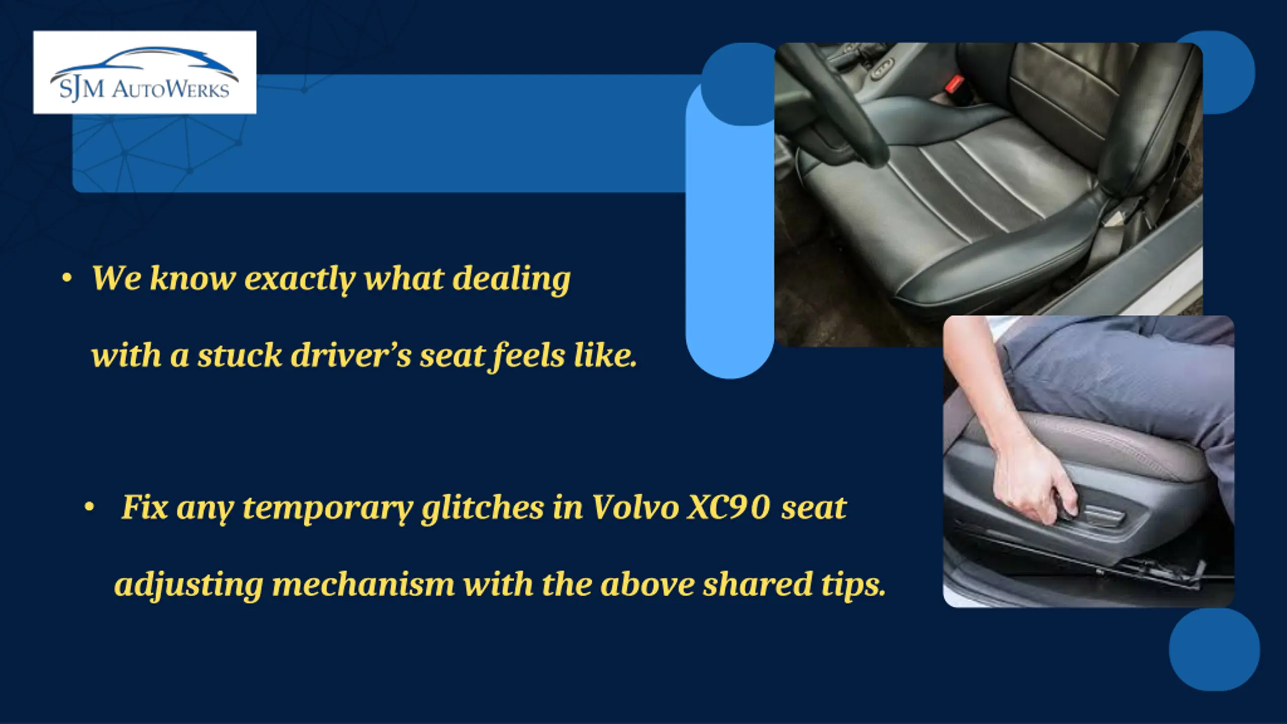 We know exactly what dealing with a stuck driver s seat feels like. Fix any temporary glitches in Volvo XC90 seat adjusting mechanism with the above shared tips.
