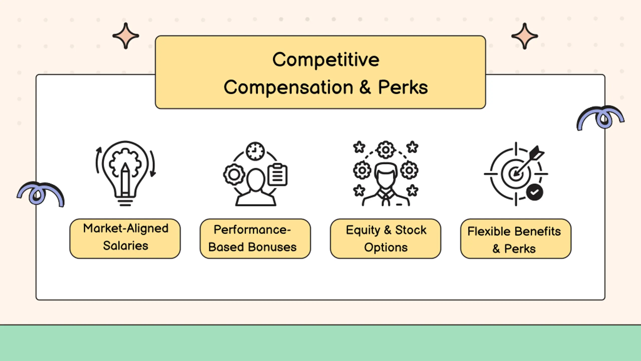 Competitive Compensation & Perks Market-Aligned Salaries Performance- Based Bonuses Equity & Stock Options Flexible Benefits & Perks