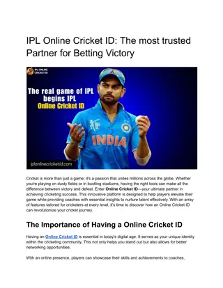 Introduction to IPL Online Betting ID The IPL, or Indian Premier League, is more than just a cricket tournament; it s a festival that unites fans from all walks of life. With the excitement of nail-biting finishes and stunning performances, it's no wonder that millions flock to watch their favorite teams battle it out on the field. But what if you could add another layer of thrill to this already exhilarating experience? Enter the world of Online Betting ID! With an Online Cricket ID, cricket enthusiasts can engage even deeper with each match. Whether you're cheering for your team or analyzing player stats, having an Online Betting ID allows for strategic bets that can lead to impressive wins. As this trend continues to gain traction among fans worldwide, let s explore how you can make the most out of IPL's electrifying atmosphere while enjoying safe and responsible Cricket Betting ID practices! The Popularity of IPL and Online Betting ID The Indian Premier League (IPL) has transformed the landscape of cricket. With its thrilling matches and star-studded teams, IPL attracts millions of fans every season. The excitement is palpable, drawing audiences not just for the sport but also for the betting opportunities it presents. Online Betting ID has skyrocketed in popularity alongside this phenomenon. Fans are eager to engage with their favorite teams on a deeper level by placing bets through secure online platforms. This trend allows cricket enthusiasts to feel more connected to the game while enjoying potential financial rewards. As technology evolves, so does the way people interact with sports. Online Cricket ID offers user-friendly experiences that cater to both novice bettors and seasoned players alike. The convenience of mobile access means you can place your bets from anywhere, making it an appealing option IPL Online Betting ID during match days or tournament nights. Benefits of Using an Online Cricket ID for Betting ID. Using an Online Cricket ID for betting can significantly enhance your experience. First, it provides access to a wide array of markets and odds. With just a few clicks, you can explore various betting options that traditional methods might not offer.