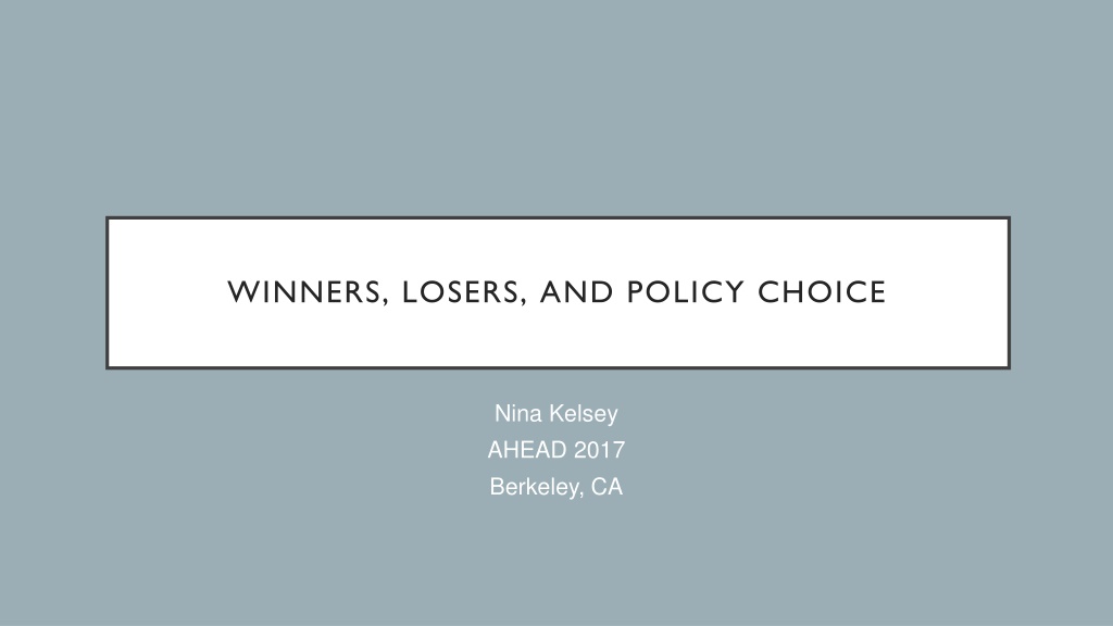 WINNERS, LOSERS, AND POLICY CHOICE Nina Kelsey AHEAD 2017 Berkeley, CA