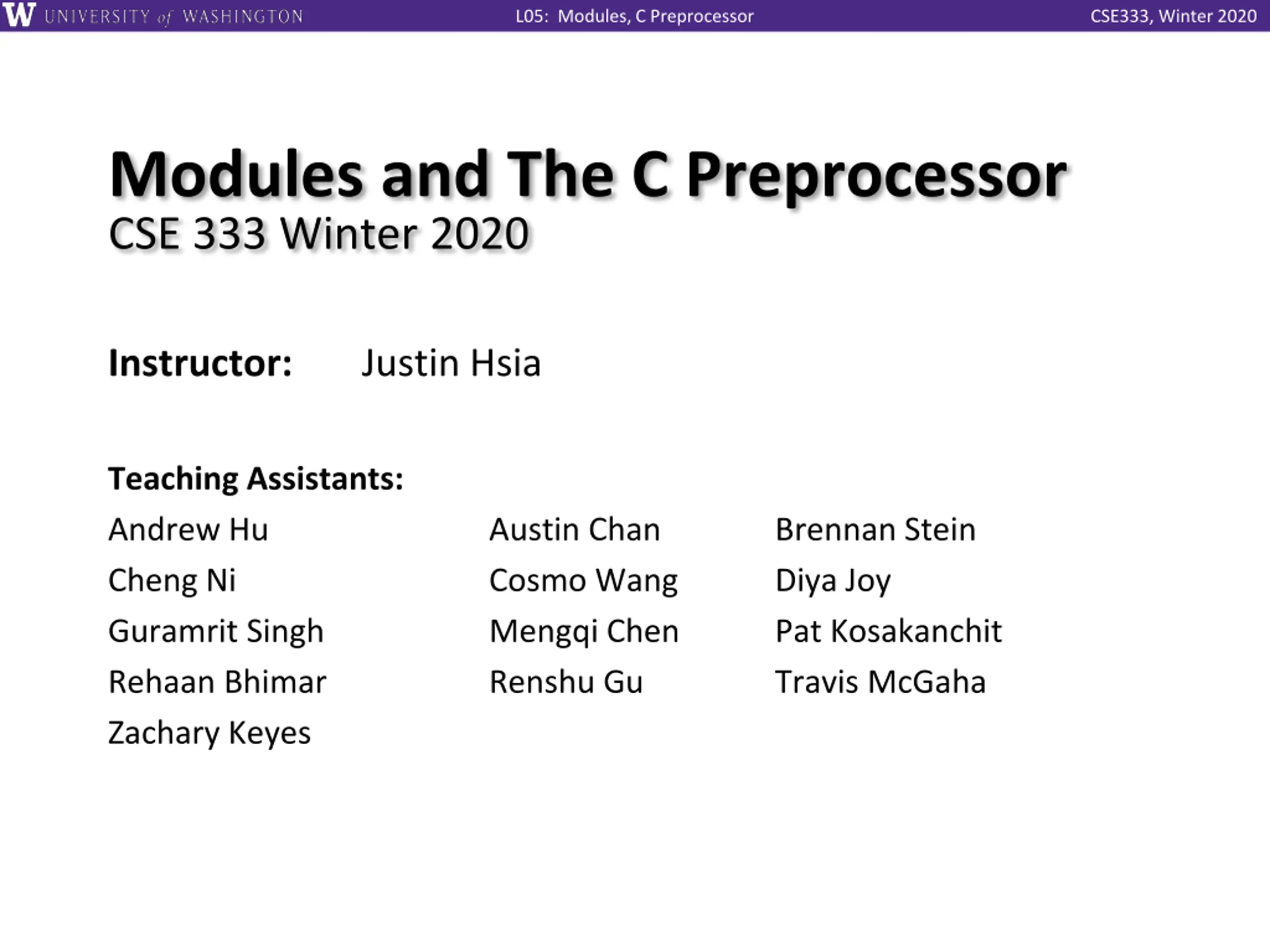 L05: Modules, C Preprocessor CSE333, Winter 2020 Modules and The C Preprocessor CSE 333 Winter 2020 Instructor: Justin Hsia Teaching Assistants: Andrew Hu Cheng Ni Guramrit Singh Rehaan Bhimar Zachary Keyes Austin Chan Cosmo Wang Mengqi Chen Renshu Gu Brennan Stein Diya Joy Pat Kosakanchit Travis McGaha