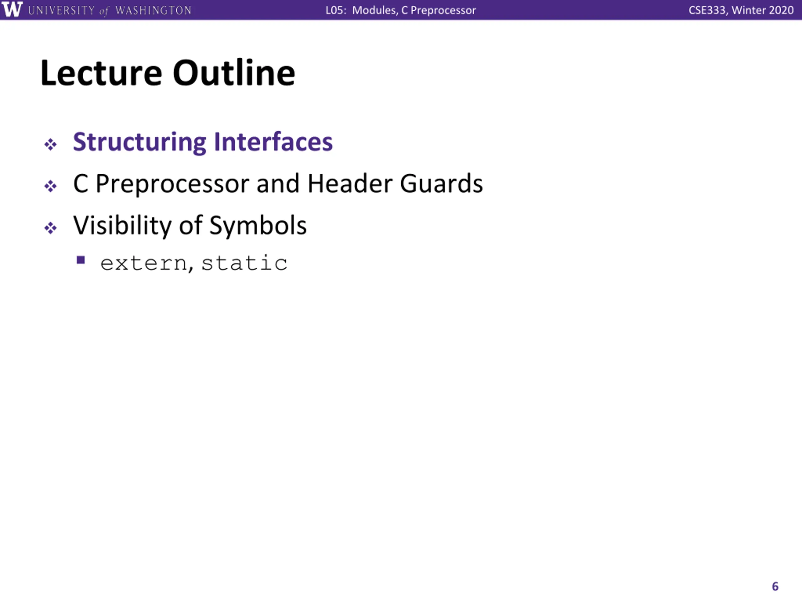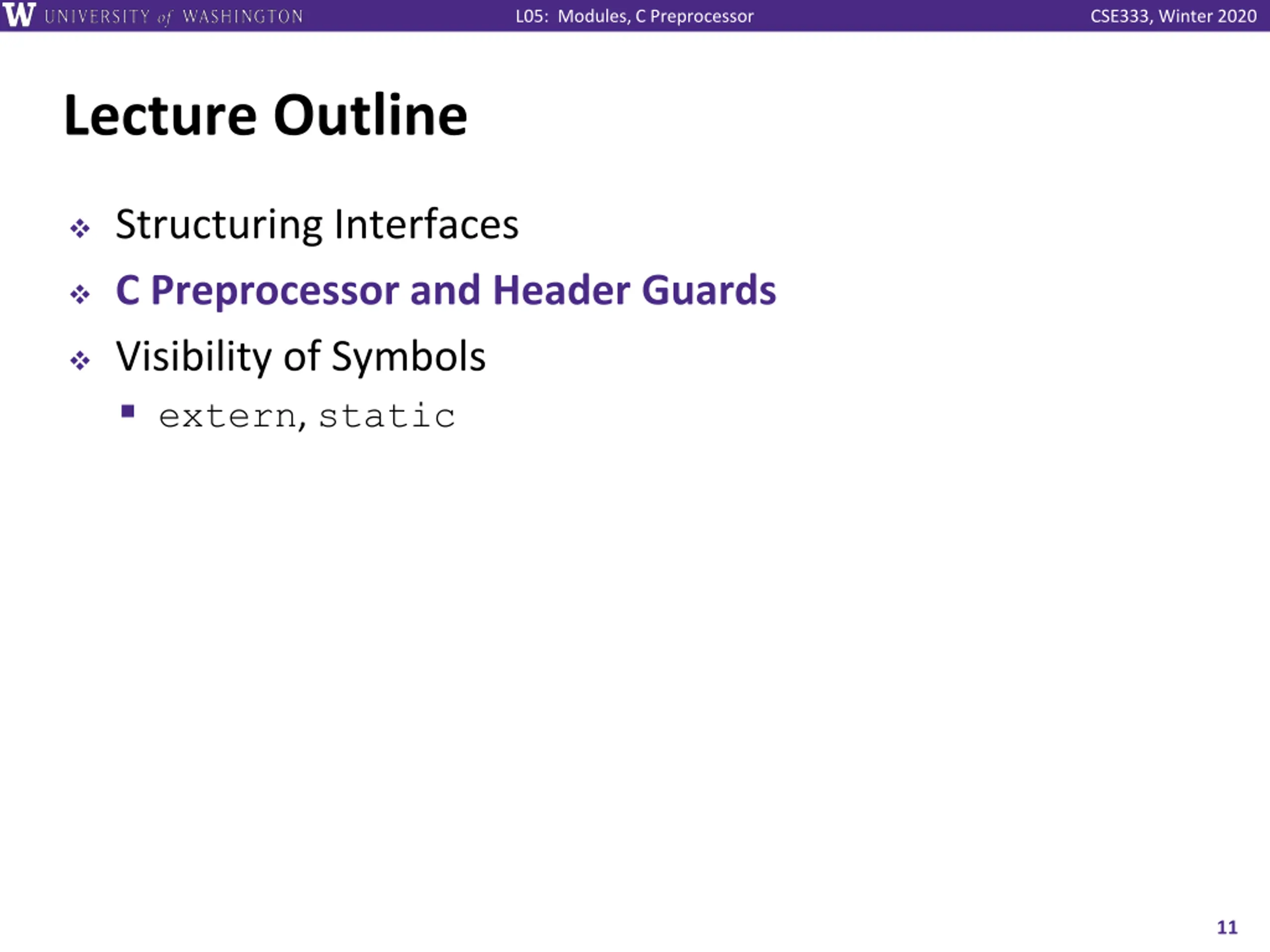 L05: Modules, C Preprocessor CSE333, Winter 2020 Lecture Outline Structuring Interfaces C Preprocessor and Header Guards Visibility of Symbols extern, static 6