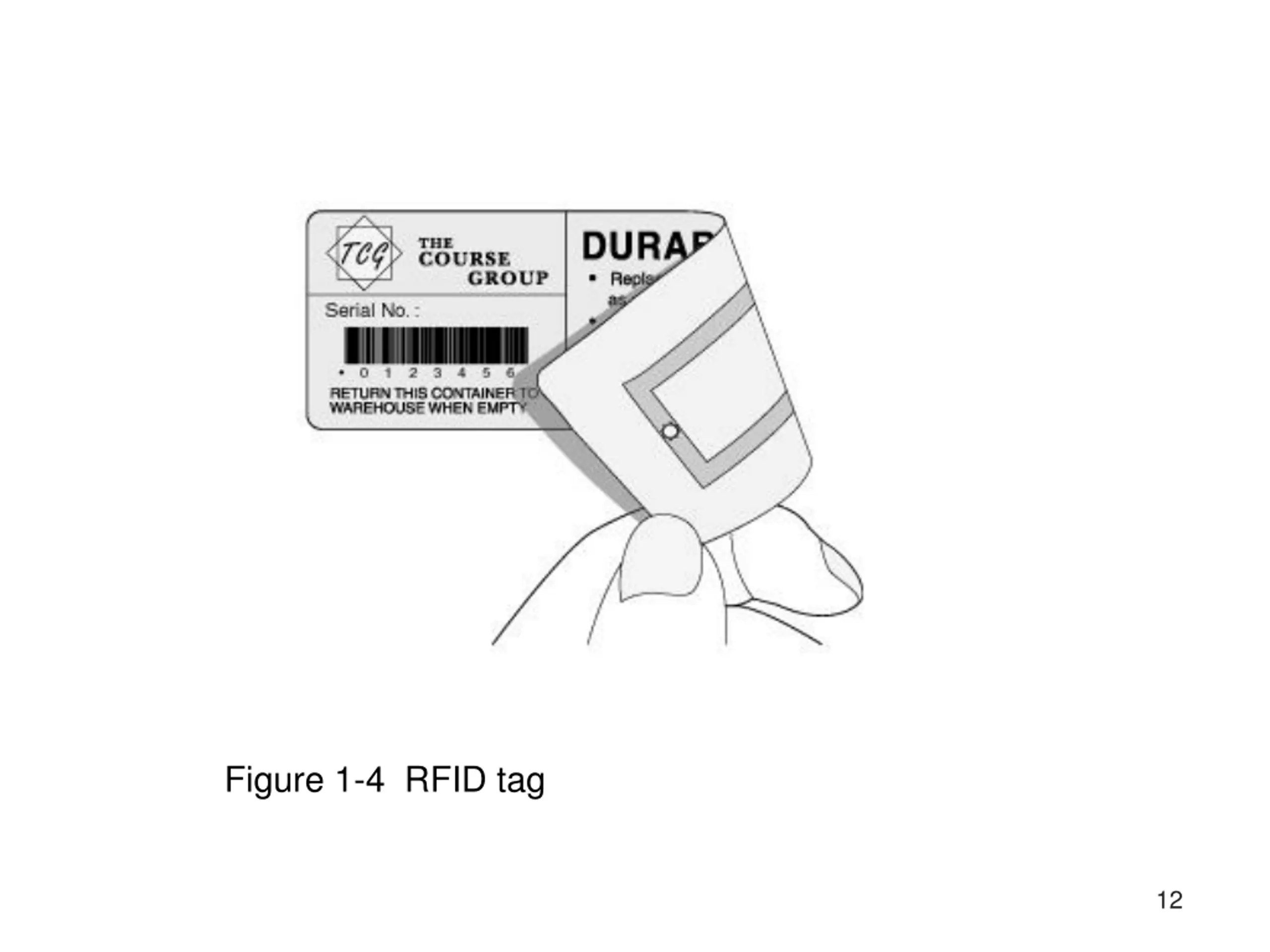 Industry Manufacturing examples: RFID tags are often used RFID Used for inventory and security 11