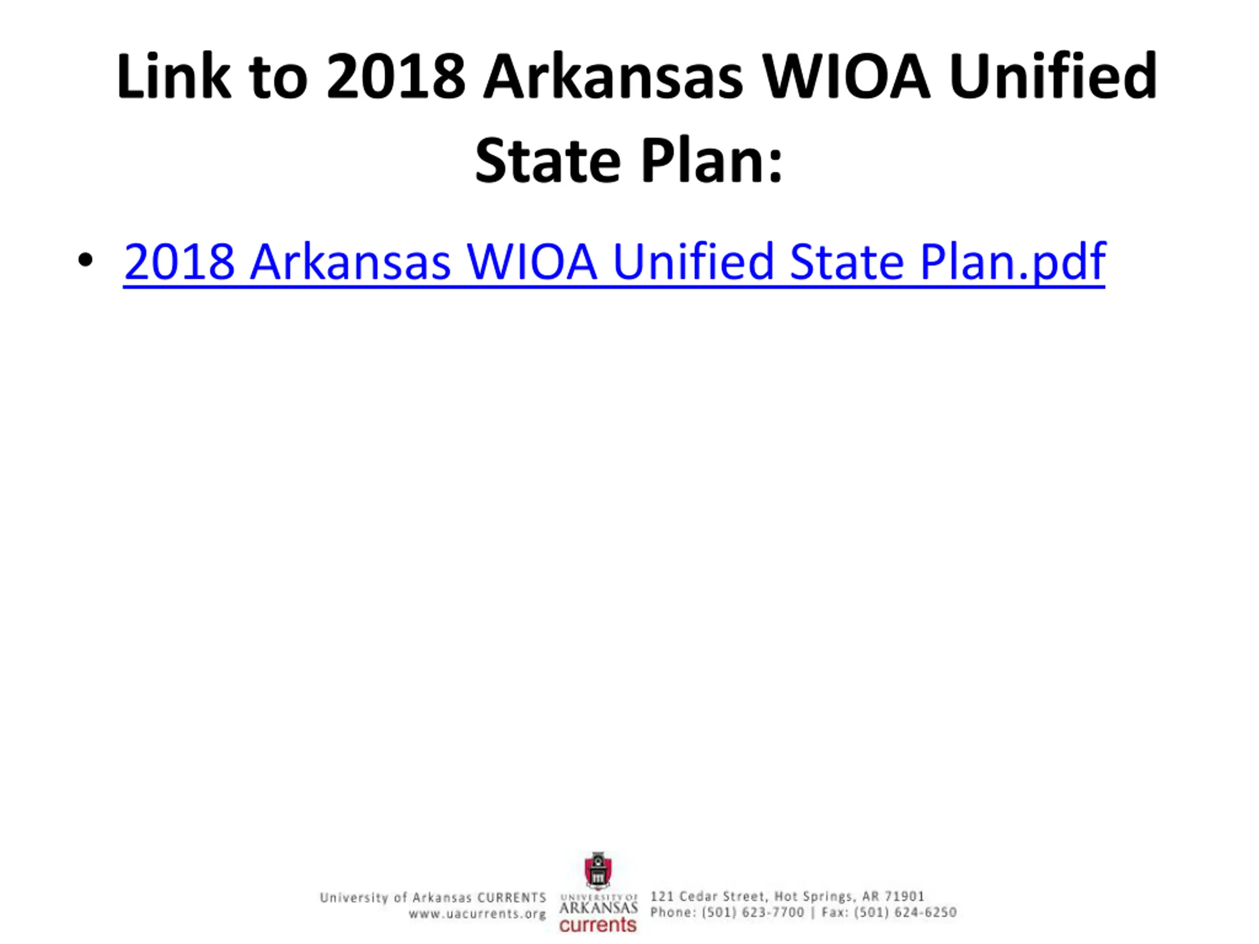 Link to 2018 Arkansas WIOA Unified State Plan: 2018 Arkansas WIOA Unified State Plan.pdf