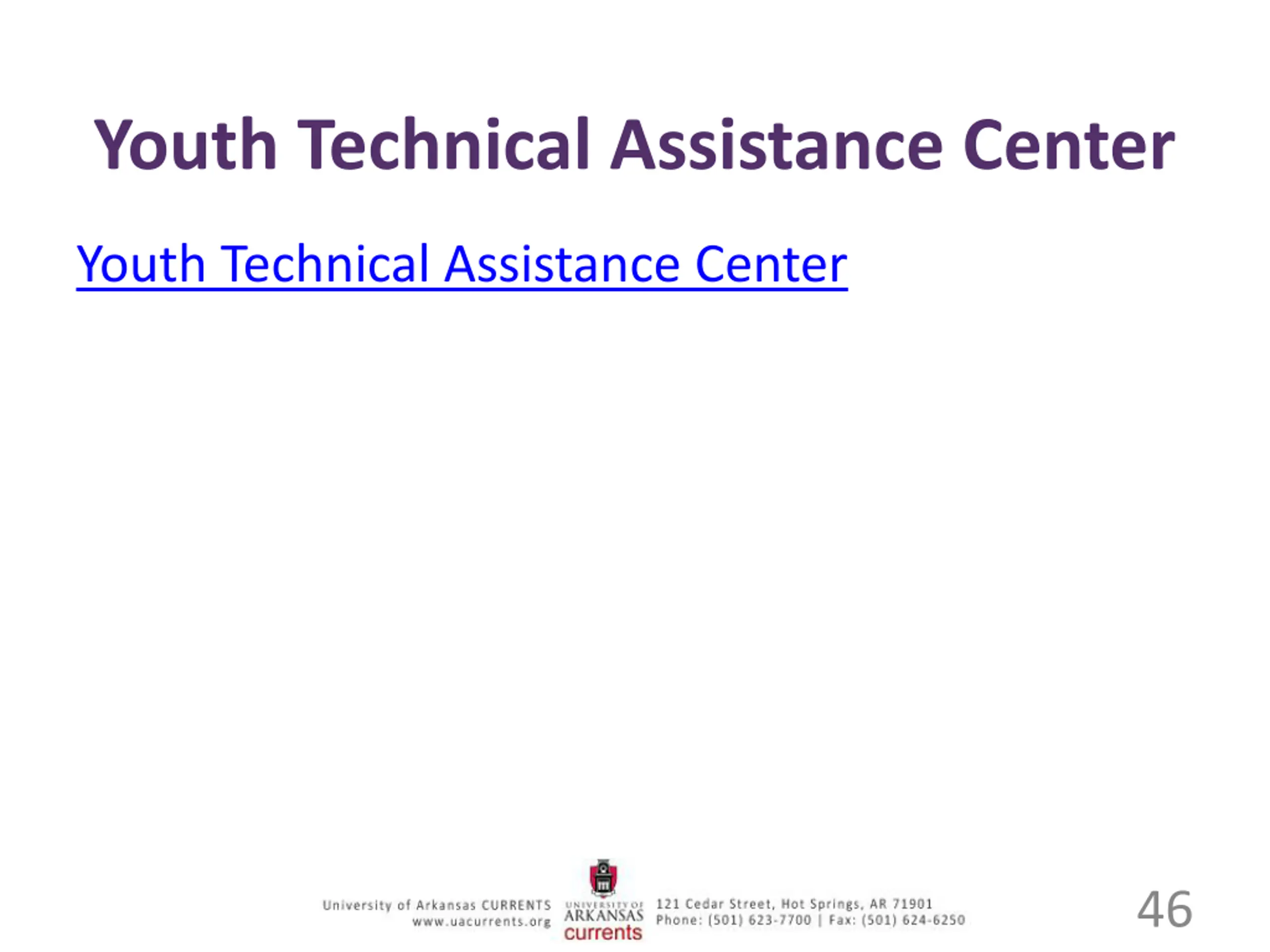 Youth Technical Assistance Center Youth Technical Assistance Center 46