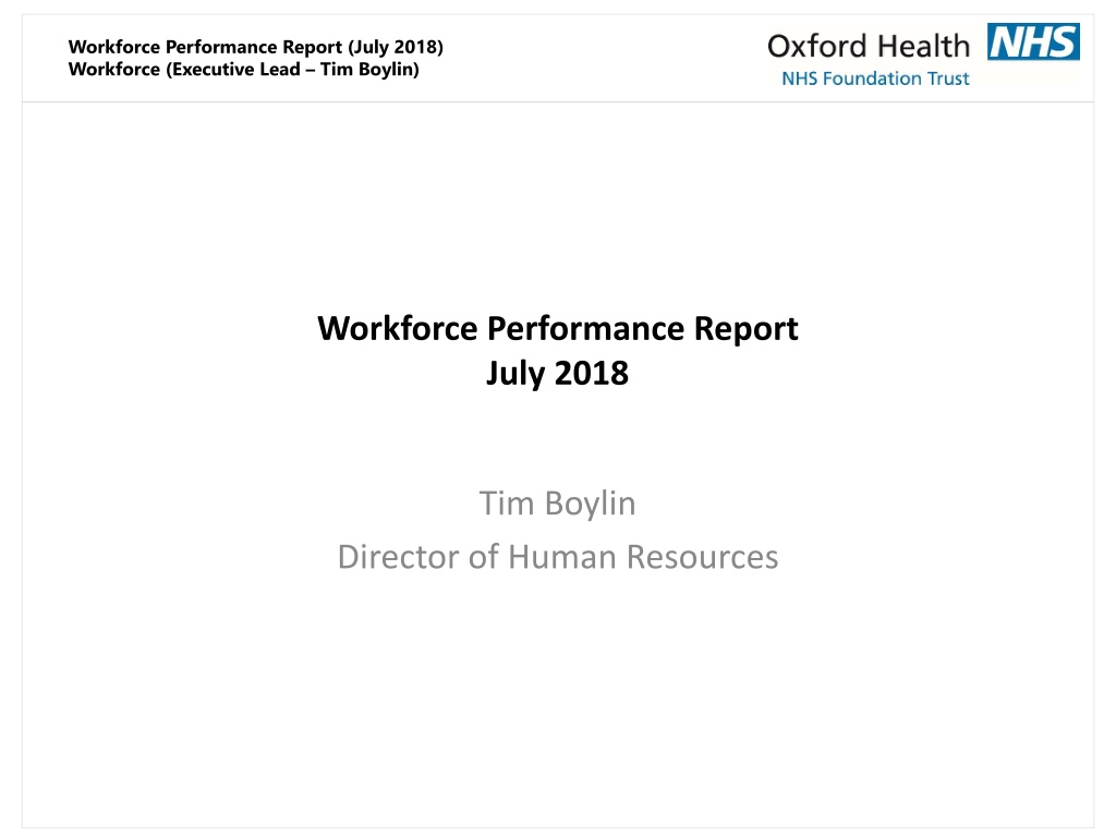 Workforce Performance Report (July 2018) Workforce (Executive Lead Tim Boylin) Workforce Performance Report July 2018 Tim Boylin Director of Human Resources
