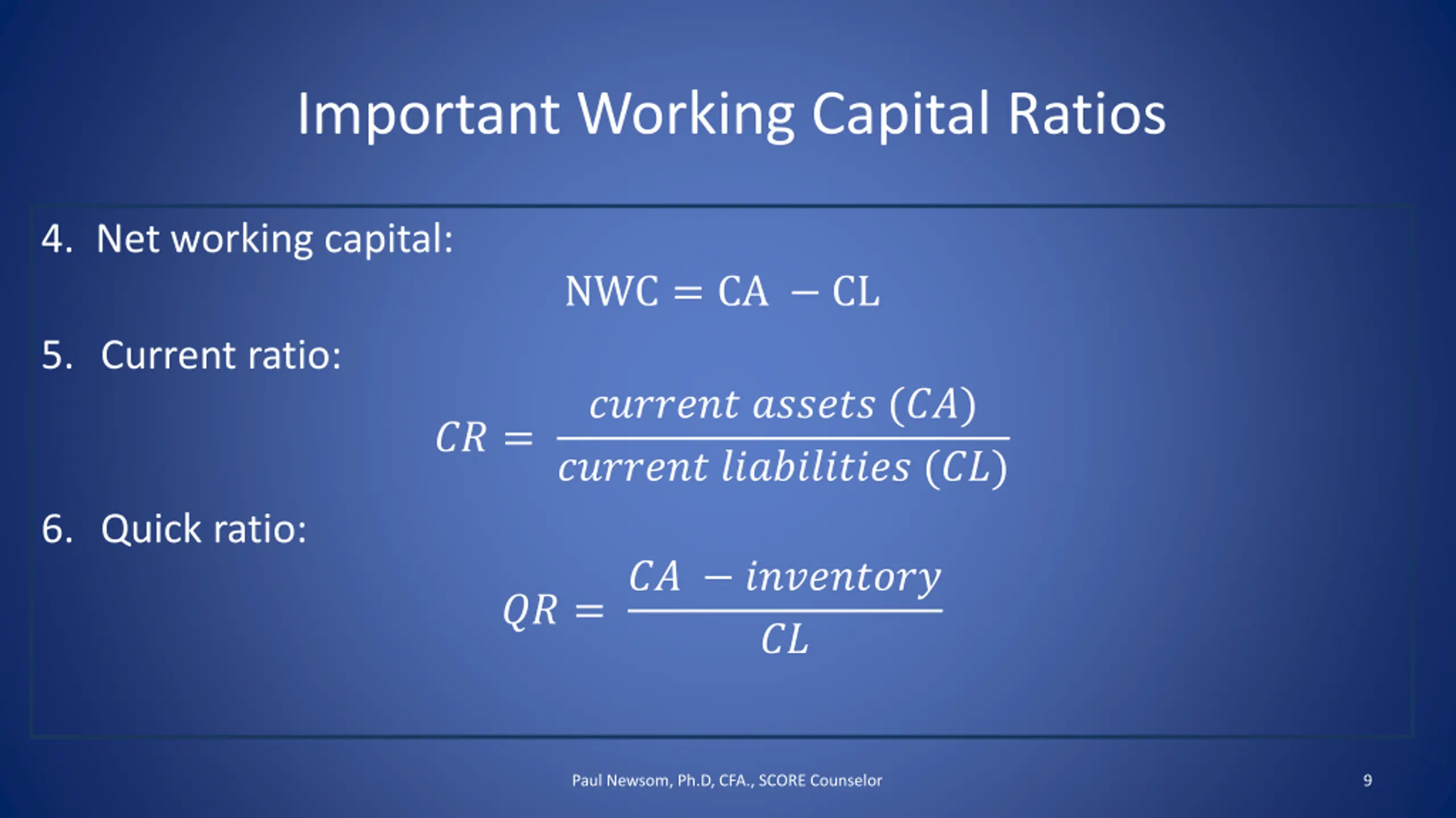 Working Capital Paul Newsom, Ph.D, CFA., SCORE Counselor 4