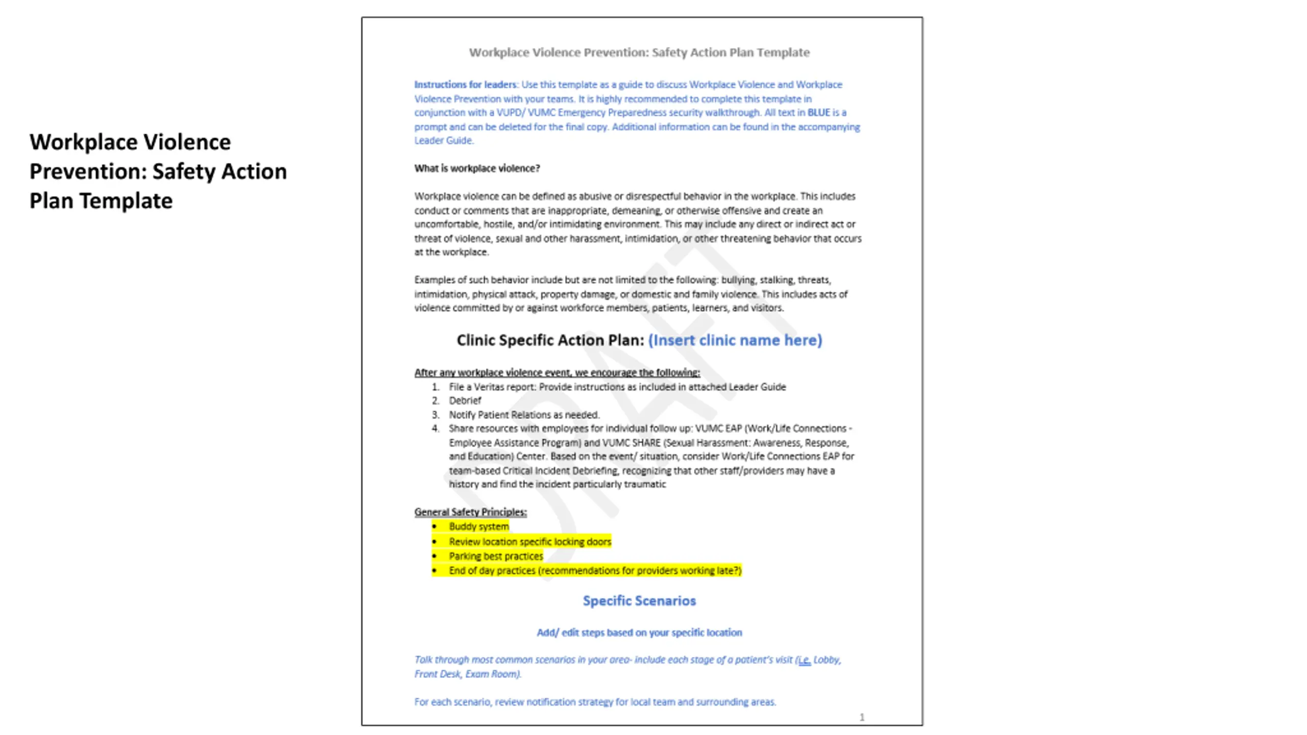 VMG Workplace Violence Prevention Committee: Safety Plan Updates 10/20/2022 VUMC Workplace Violence Steering Committee