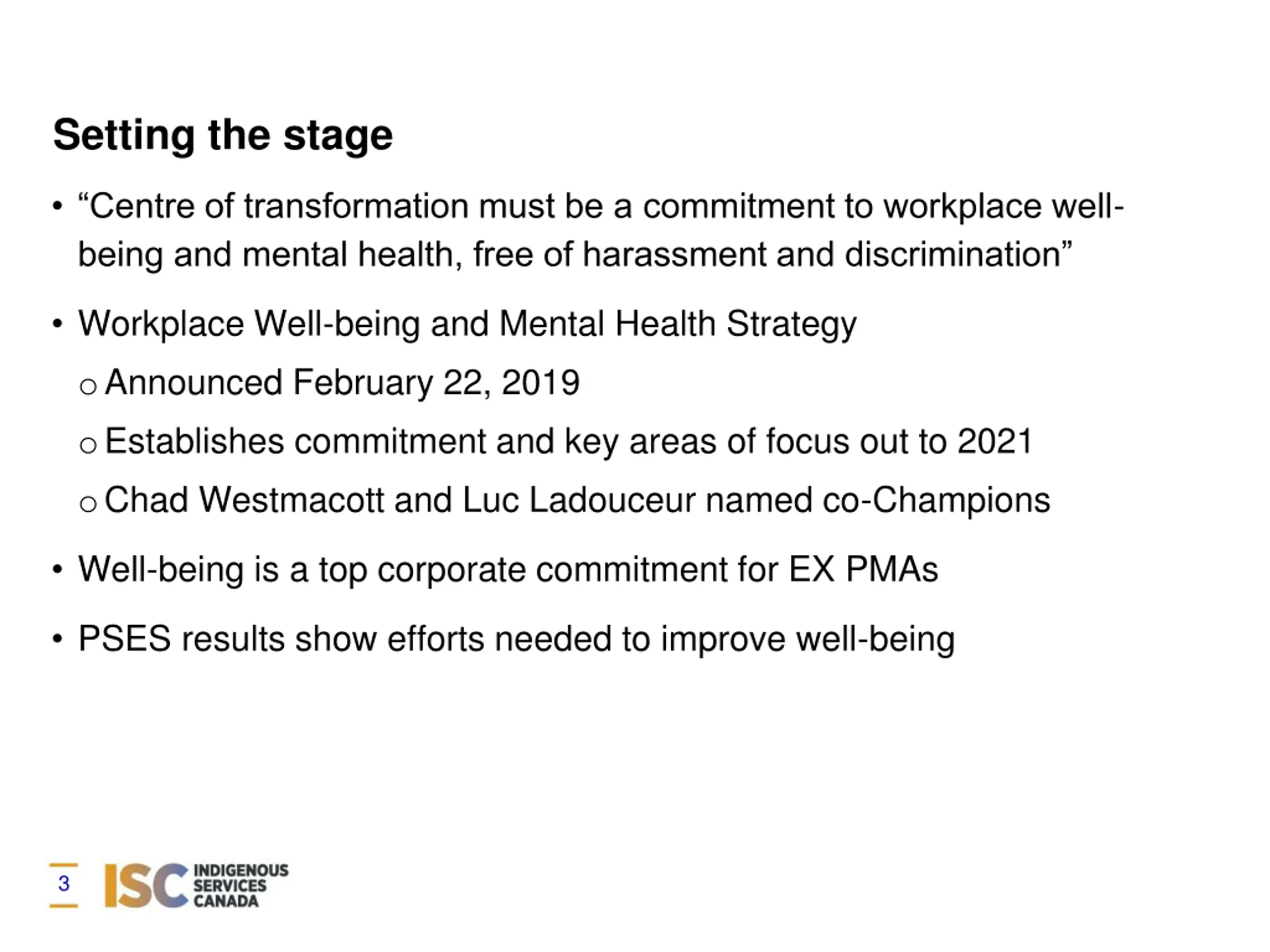 Well-being and Mental Health: Update and Next Steps Chad Westmacott and Luc Ladouceur ISC co-Champions May 7, 2019: National Union Management Consultation Committee