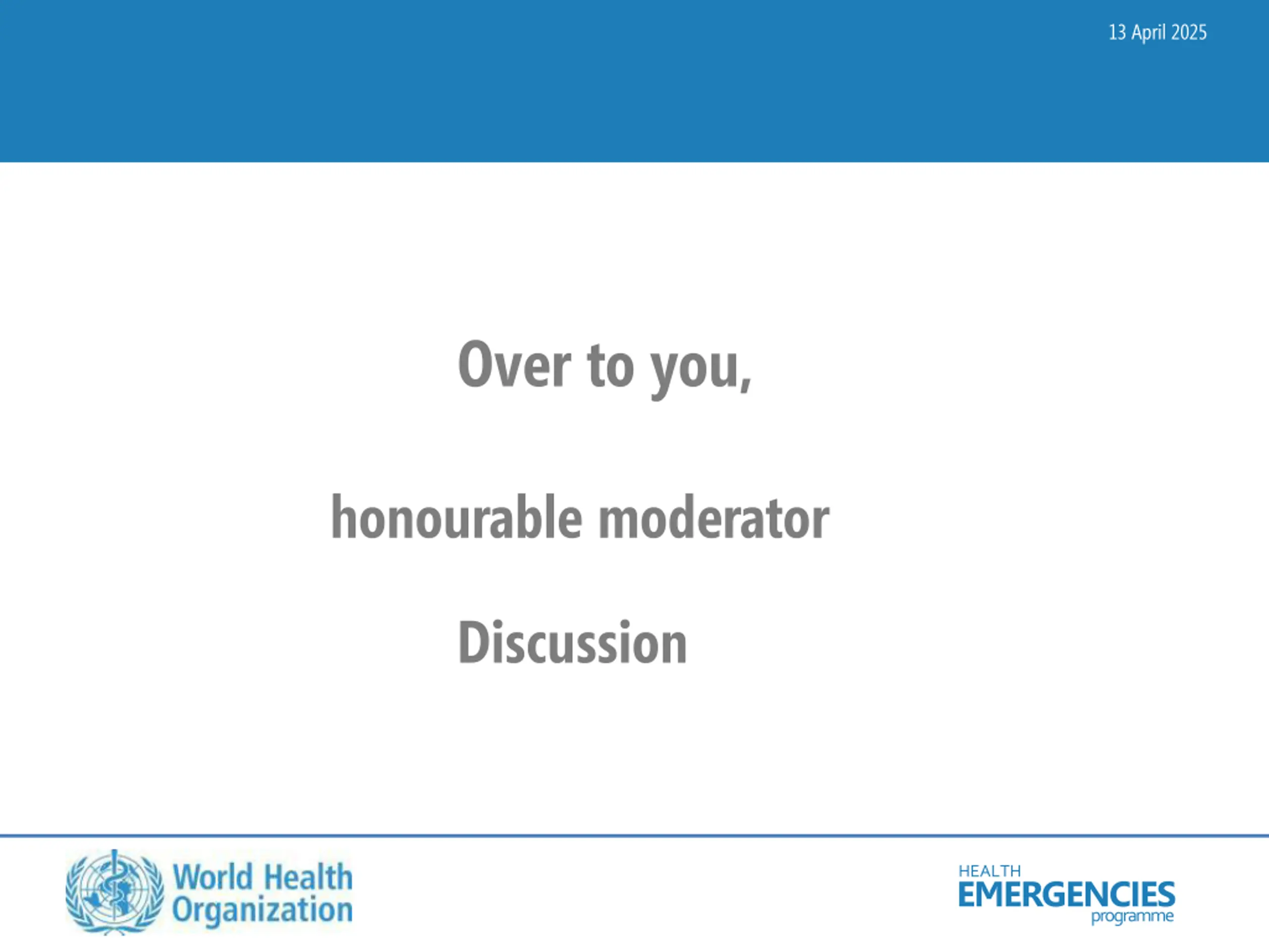 13 April 2025 Over to you, honourable moderator Discussion HEALTH EMERGENCIES programme