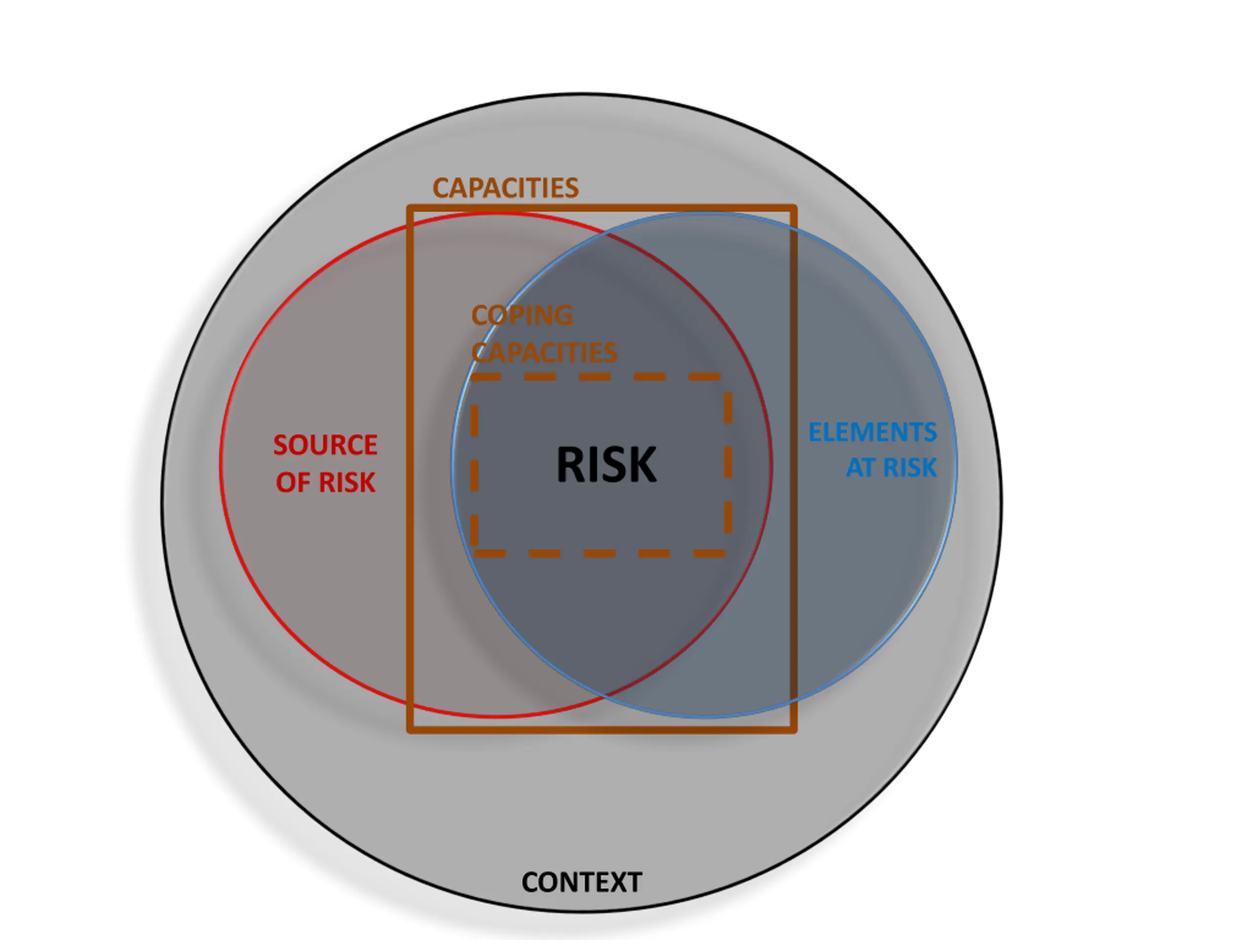 CAPACITIES COPING CAPACITIES ELEMENTS AT RISK SOURCE OF RISK RISK HEALTH EMERGENCIES CONTEXT programme