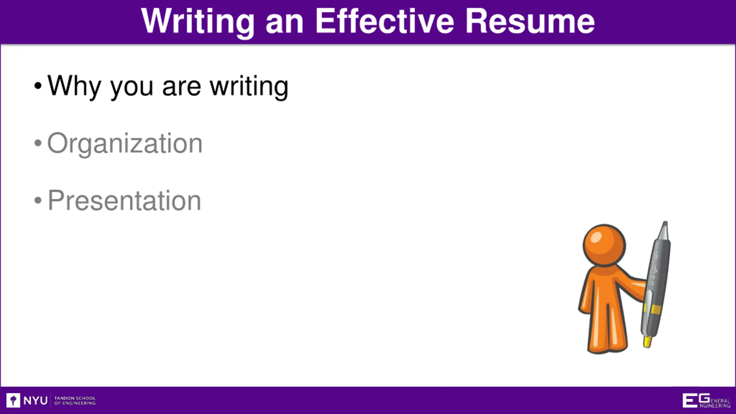 Write Concisely A focused, targeted resume is best: Avoid the temptation to go more than one page Delete obvious information in order to highlight your unique qualities Find specific, dynamic verbs: Use present (or past) imperatives Include each verb only once Consult online lists of resume action words