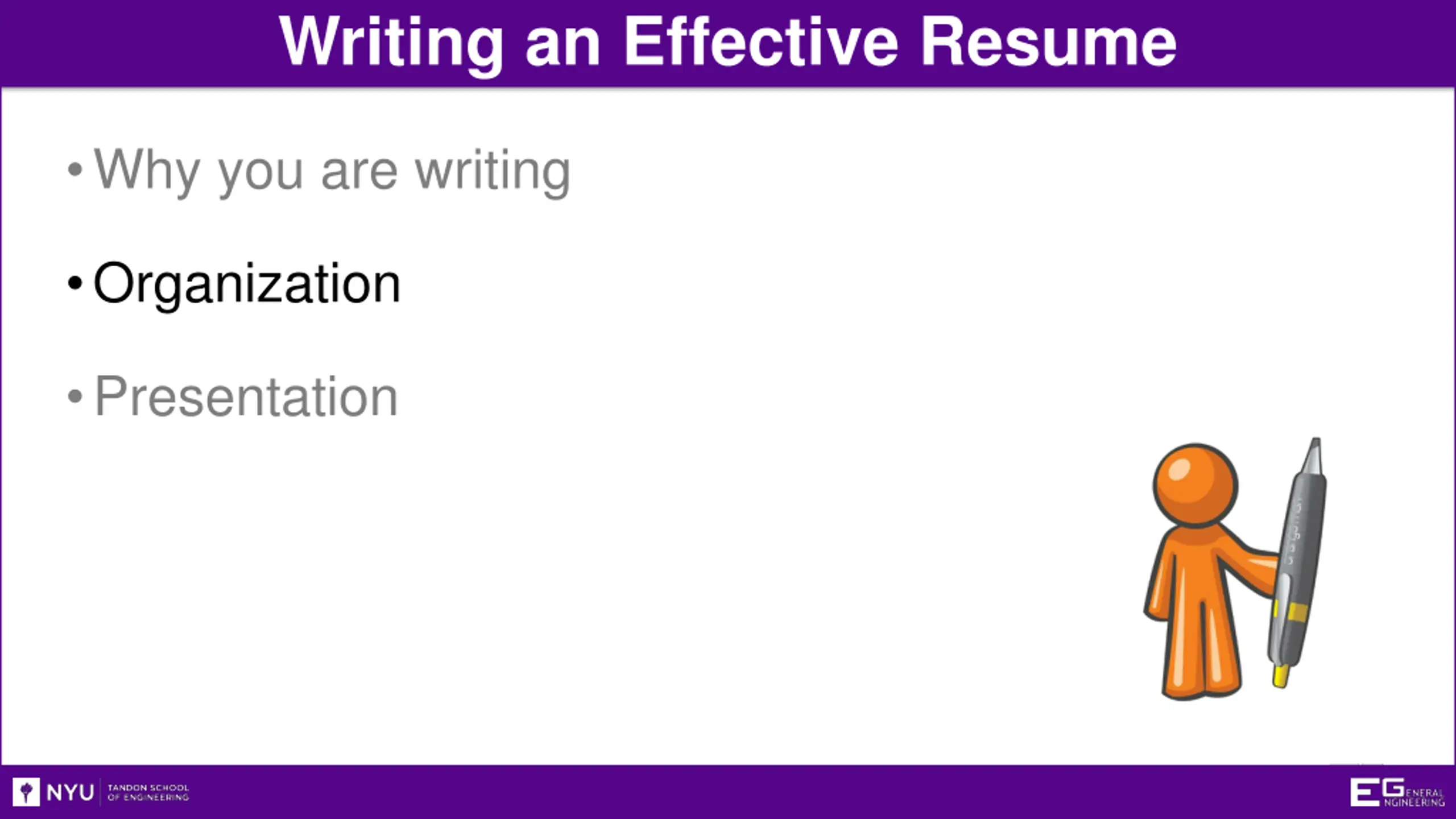 Summary of Sections Name Address, telephone number, e-mail address Objective Education Experience Achievements and awards Skills Professional affiliations Publications or projects Optional