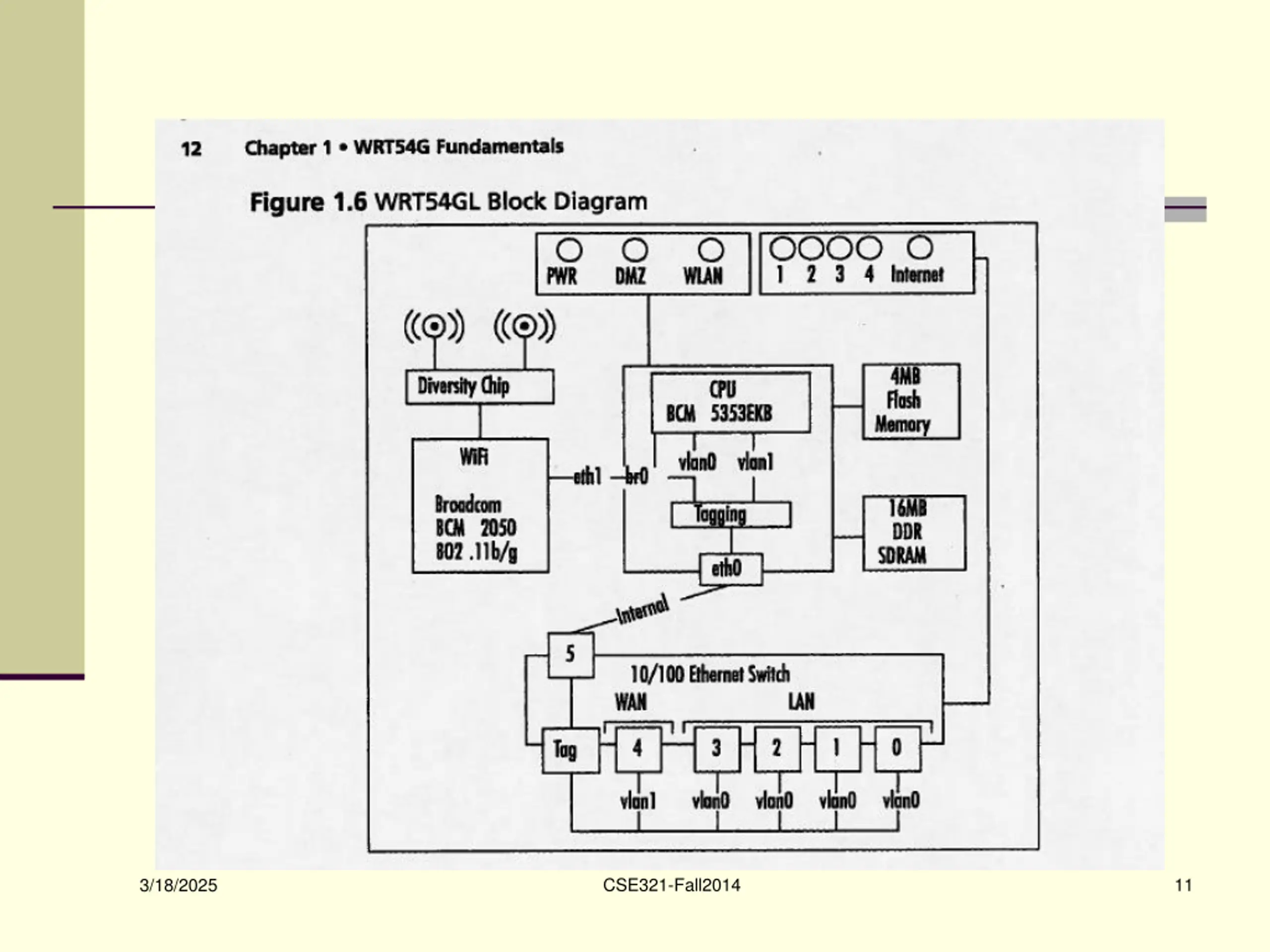WRT54GL Block diagram See next slide Also follow this model: CPU Storage Input Output 10 3/18/2025