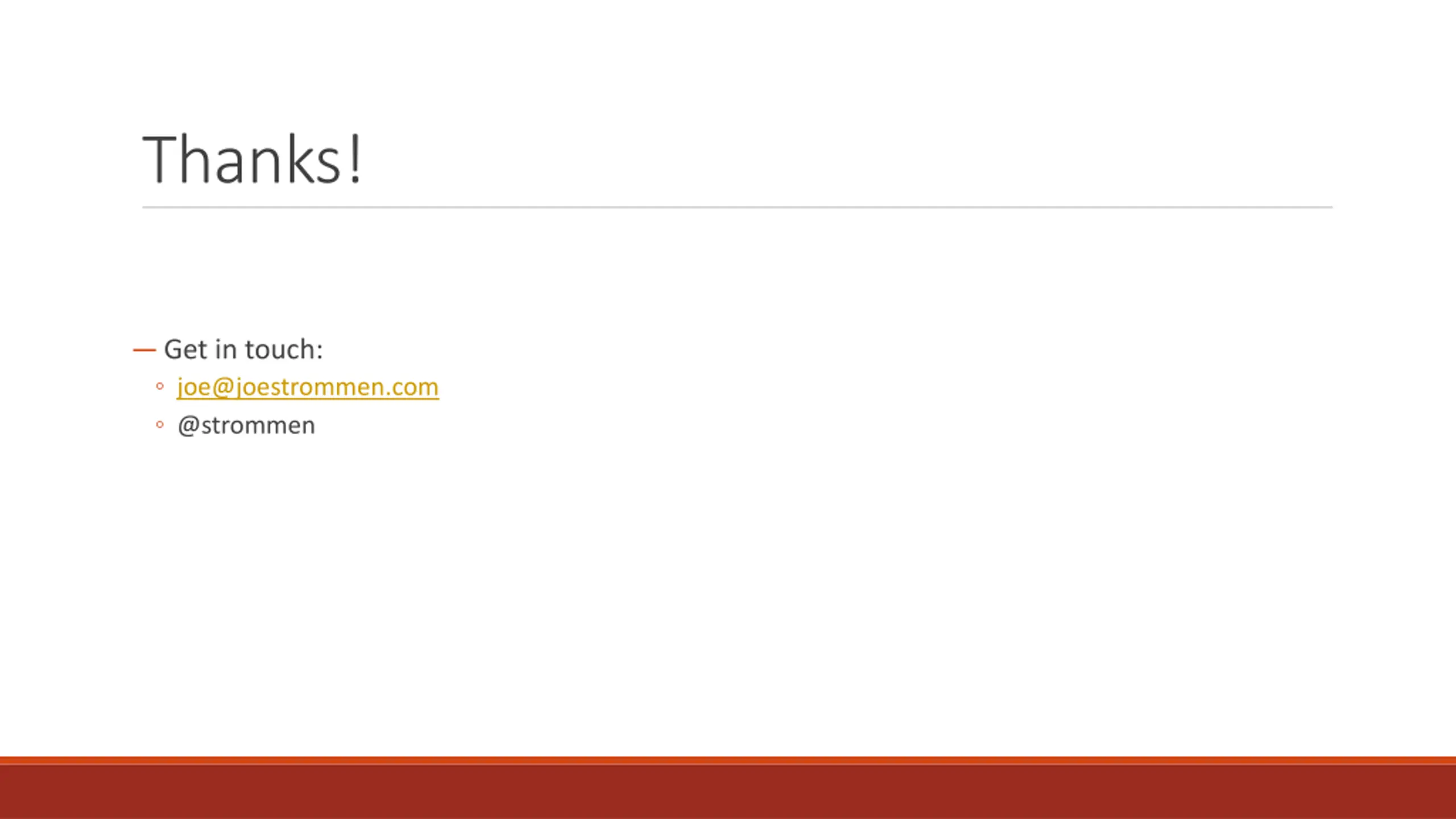 Thanks! Get in touch: joe@joestrommen.com @strommen