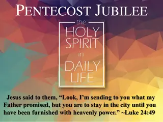 Scripture Sacraments Christian Beliefs Ascension: After his death and resurrection Jesus returns to His Father. He promised to send the Holy Spirit. The Trinity the Son returns to the Father and sends the Holy Spirit. The need for a community in prayer. The Holy Spirit empowers us. Confirmation- the promise that The Holy Spirit will empower and transform us. Acts 1: 6- 14 ; Jesus returns to his Father Hymns This is my body back to my Father soon I shall go.. I will be with you Be still Taize chant: Veni Sancti Spiritus (Come Holy Spirit) Come O Holy Spirit WIF Prayers/Traditions Apostolic Creed - The Sign of the Cross Feast Day/Celebration Come Holy Spirit YEAR 6 Pentecost Serving Witness LF2 The Ascension of Jesus Christian Life; Beliefs and Values The need for evangelisation- passing on the faith Experiences, feelings and ideas Has anybody gone away or moved away from you? How did feel? Did you expect them to return? What or where is Heaven for you? How do you keep them close to you? Feelings of Loneliness, Emptiness, Expectation. Art/Images/ and Artefacts Come and See pg 183 Stained Glass Window Images Commitment Reverence Courage Determination
